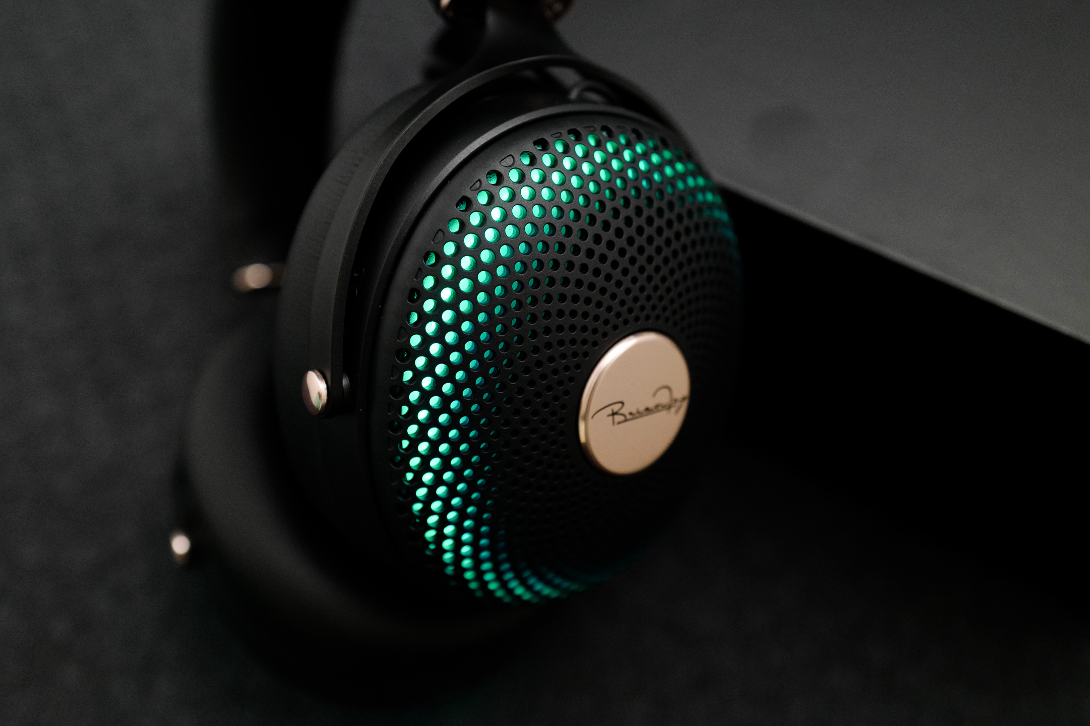 以及,数字音量和模拟音量同时存在这种情况,内部大概率有独立的耳机放大电路,猜想和Para50的音质好,也存在蛮大关系。 Para50另一个显而易见的设计,耳罩上带光环(灯),给了7种颜色切换,以及常亮和根据音乐呼吸律动的两种模式。耳机上有灯我看来不能算新鲜,Para50好就好在,灯光的颜色估计经过筛选,看起来不是那种媚俗的灯色,比较养眼;而且灯管设计在白色声学滤网背部,亮起来比较柔和不刺眼。确实蛮有情调,也有一定的现代、活泼的装饰作用,不过开灯增加耗电,续航会降低,玩下来感觉还行,也不是太费电。也可以关闭灯光,喜好因人而异。