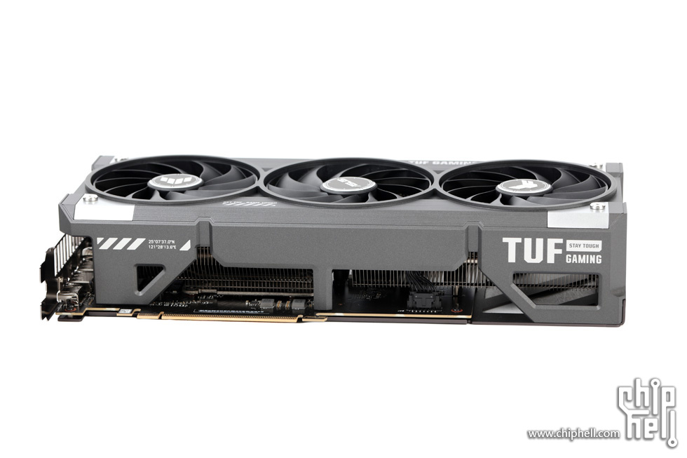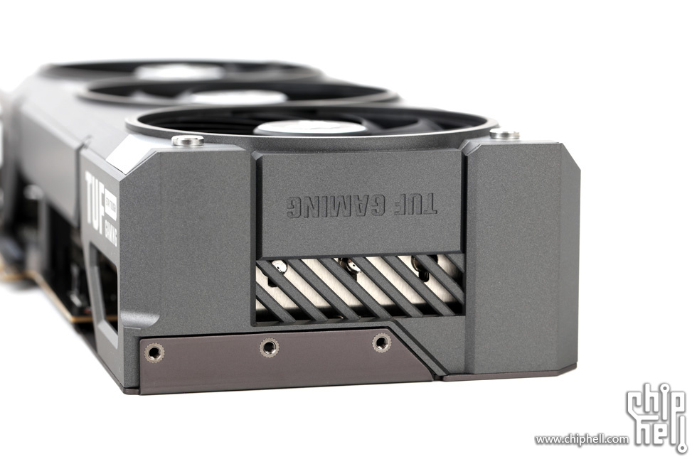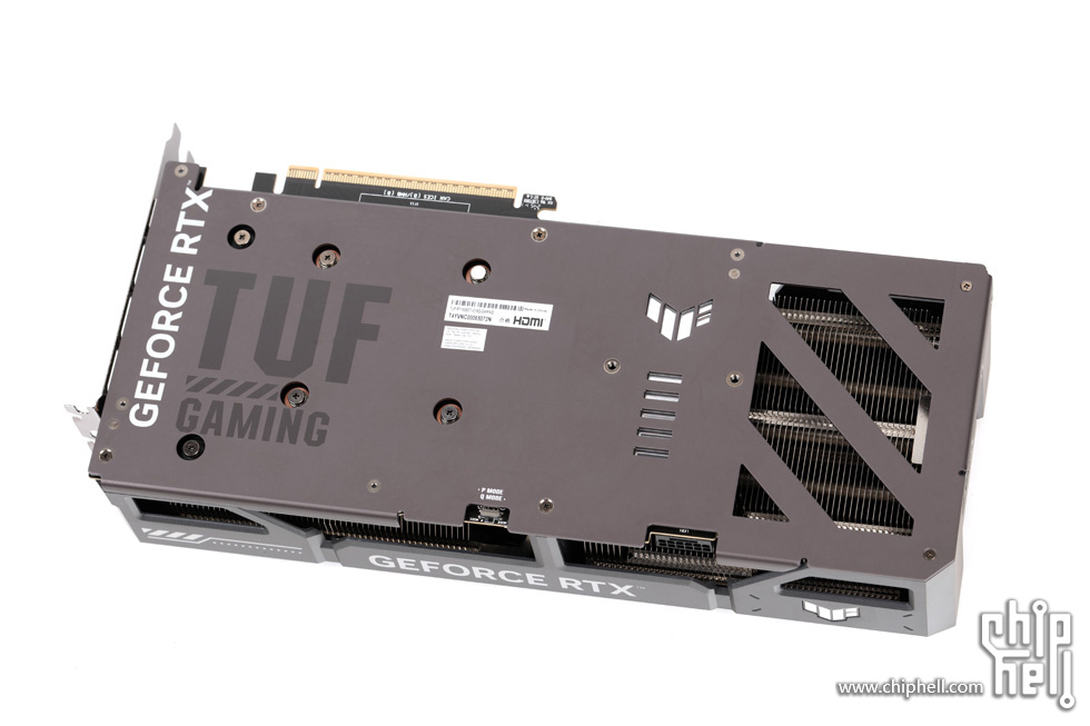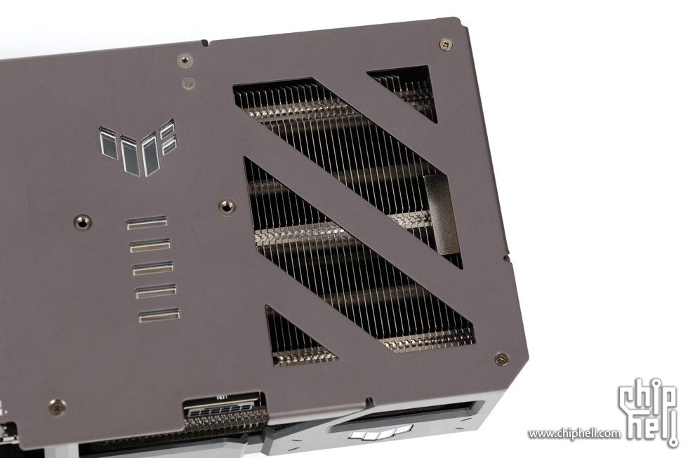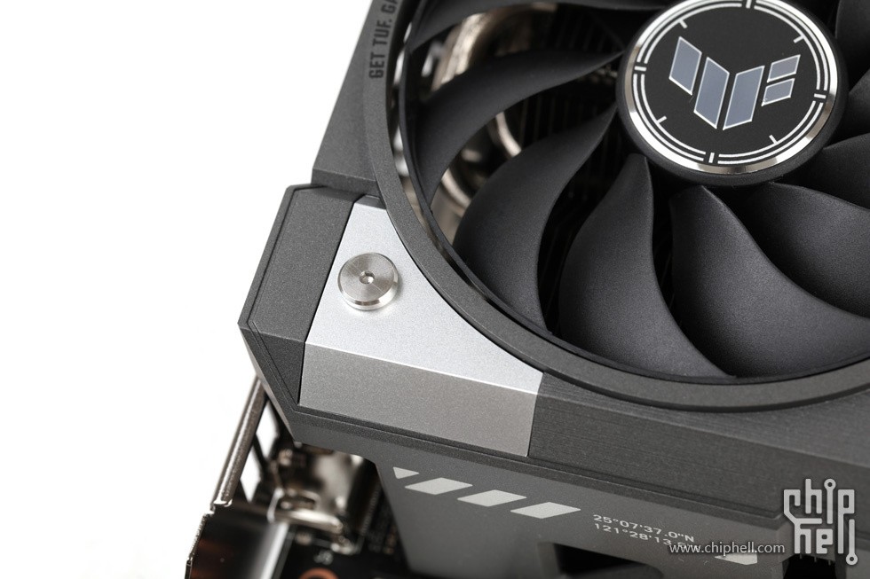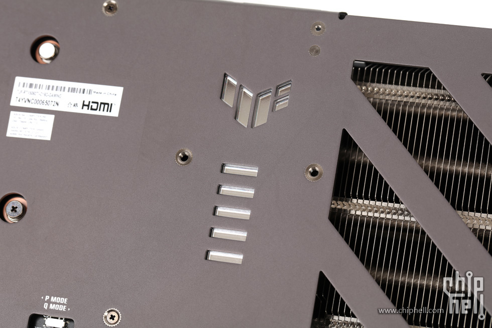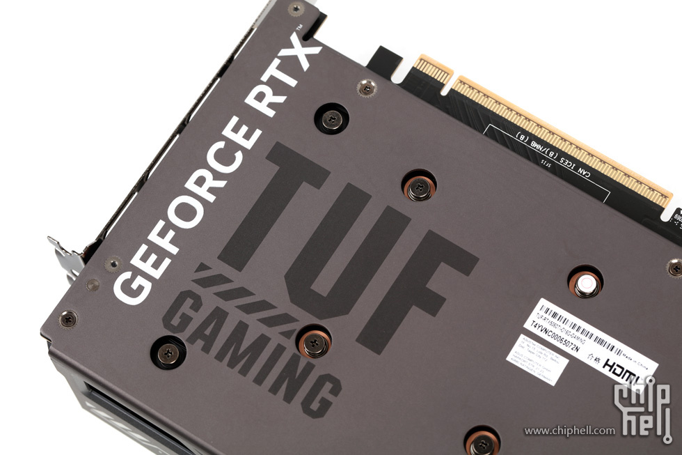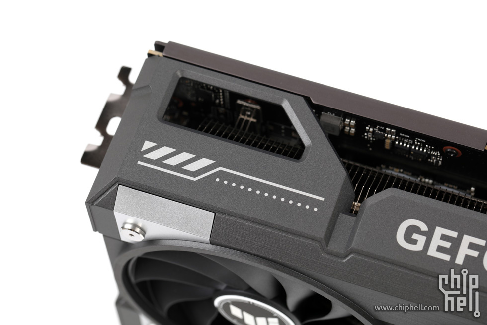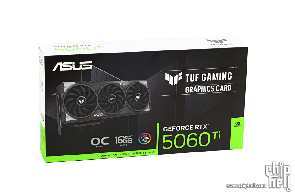 包装设计与同期同代的TUF Gaming系列显卡保持一致: 采用正面黑底侧面白底的撞色搭配.以品牌概念图为底.搭配产品正面渲染图与品牌商标.靠NVIDIA统一样式的腰封做区别. 内层包装印有TUF Gaming Logo和主题系列的各式图标印花. 附件包括说明书,感谢卡片和TUF系列标配的可靠性认证卡. 一条电源转接线.规格为两个传统PCIe 8-pin母口转单个16-pin(12V-2x6/12VHPWR通用)公头. 一根简易的两用式磁吸支架/螺丝刀.搭配了对应TUF Gaming的配色,Logo和涂装.造型上与本代ROG款中配有的款式相同. 显卡正面.造型和配色上延续了TUF系列近年来枪灰色的硬朗风格.细节上也与同期上市的TUF Gaming系列主板相照应.结构与上代TUF Gaming显卡相同.且依旧是搭配传统经典的大尺寸开放式三风扇散热器. 显卡背面覆盖与正面外壳相同颜色的金属背板.但与70级的几款有了显著的差异.由于GPU核心较小,散热器没有配备背框.背板图案上也去掉了横条装饰纹. 平行于挡板的白色GeForce RTX标识和位于前半区大尺寸的TUF Gaming标识. 较短的板型设计给散热器加长区域留出吹透区域.背板的开孔中仅以斜杠加强而不再试图融入TUF Logo的造型. 背板后半位置嵌入了以TUF Logo和能量条风格的RGB灯标. 透明双层风格提升了质感. 双BIOS切换开关. 输出接口为三个DP 2.1b和一个HDMI 2.1b. 半封闭的正面外壳上的斜纹开窗装饰. 显卡顶部. 靠近挡板侧的支撑包围和涂装. 大尺寸的GeForce RTX标识印于中心区域. 尾部不再采用RGB灯标而是一个抛光亮面的TUF Logo. 传统朝向的16pin(12V-2x6)电源接口. 显卡底部. 前部警戒线风格的涂装和ASUS总部地址坐标字样形成的装饰. 尾部则是大尺寸的TUF Gaming的Logo和Stay Tough的标语. 包围式的显卡尾部.背板弯折后提供固定孔位. 中心区域留出与挡板侧相似的斜纹开窗装饰区以及TUF Gaming刻字. 正面面板. 边缘边角统一的斜切面处理. 四角带饰钉锁固装饰的亮面贴片. 装甲样式的造型分区.拉丝风格的表面搭配品牌Logo和标语装饰. 首尾两端位置,风扇外框装饰圈上也刻有品牌标语. 三把同尺寸的十一叶风扇. 中置风扇方向相反以优化整体风道.轴心贴有ASUS Logo装饰贴. 两侧的风扇轴心贴有TUF Logo装饰. 连框式扇叶结构和优化的扇叶造型. 风扇直径尺寸规格规格为93mm. 显卡长度(不含挡板)约302mm. 高度(含挡板)约150mm. 厚度约62mm. 分解. 风扇外壳内侧. 风扇锁固支架. 风扇并线后的统一接头. 底边位置配有额外的加强支架. 散热片模块正面. 近核心侧的散热片在靠近风扇一面,对应于GPU底座位置中轴作V字开槽. 散热片中轴做了扣边.远核心段的散热片的靠外侧边缘还有波浪锯齿状的扰流优化. 散热片模块底面. 镀镍铜底覆盖GPU核心.采用相变硅脂作为导热介质.显存颗粒则由固定底座板覆盖.. 底座区域上方空间也填充了散热片. 额外的底座覆盖供电MOSFET.对应位置散热片针对性调高接入. 散热器配备5条6mm热管.近核心段上在离开底座后为便于加工仅以半包贴于散热片边缘.其中靠中心的三条热管在外部回穿入靠近边缘侧的内部. 5条热管在中段位置改变走向穿入远核心段的散热片.三条回穿的热管贯穿了近核心段散热片后头部止于中段空间. 五条热管在远核心段的散热片正中一字等距排开. 远核心段的散热片阵列.散热片造型采用阶梯状.为排风留出空间. 散热片模块两侧的结构排列. 俯视和侧视角度可以更清晰观察整体结构和热管走向. 背板内侧.显存,供电以及电源接口位置都配有导热垫使背板辅助散热. 灯标位置背部贴有垫片防止漏光以保证观感. 板卡正面.为了适配散热器固定特意加大了板型. 板卡背面. 对应于GeForce RTX 5060 Ti的GB206-300 GPU. 显存由8片Samsung 16Gb 32bit 28Gbps GDDR7颗粒以双面布局组成16GB 128bit 28Gbps的配置. 7相GPU供电和2相显存供电. 供电主控uPI uP9512R. GPU供电每相搭配一颗uPI uP9646A DrMOS MOSFET. 显存每相供电MOSFET为uPI QN3104 + 2* QM3106上下桥组合. AURA灯控芯片提供RGB灯光同步控制. |