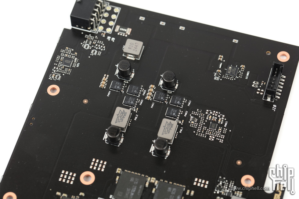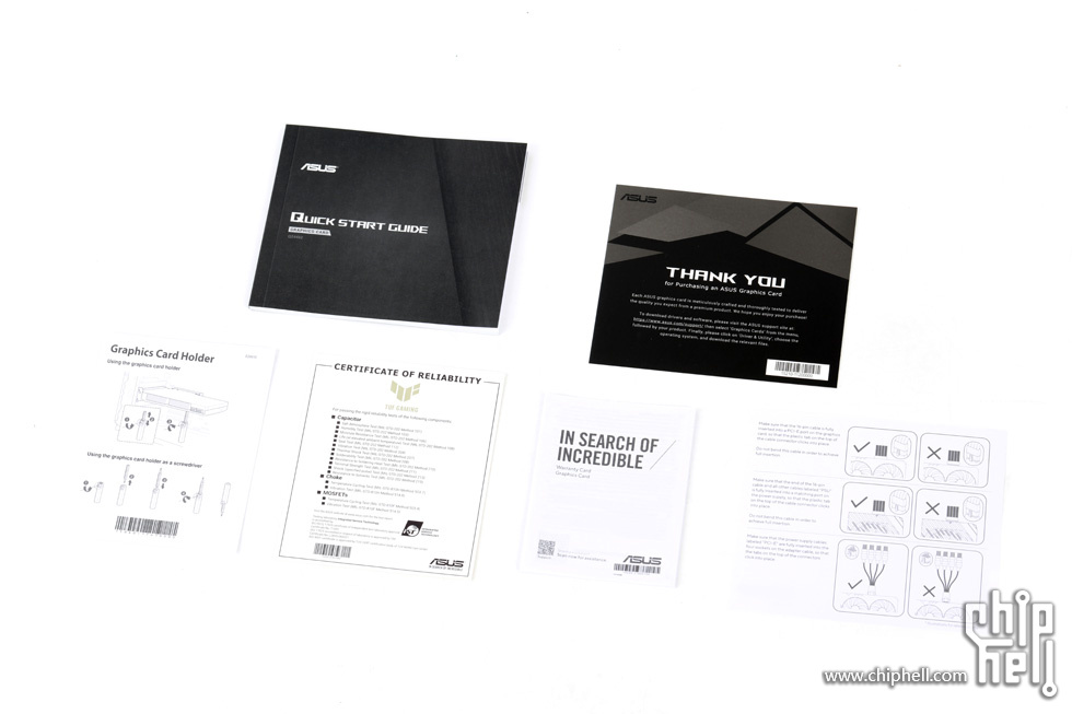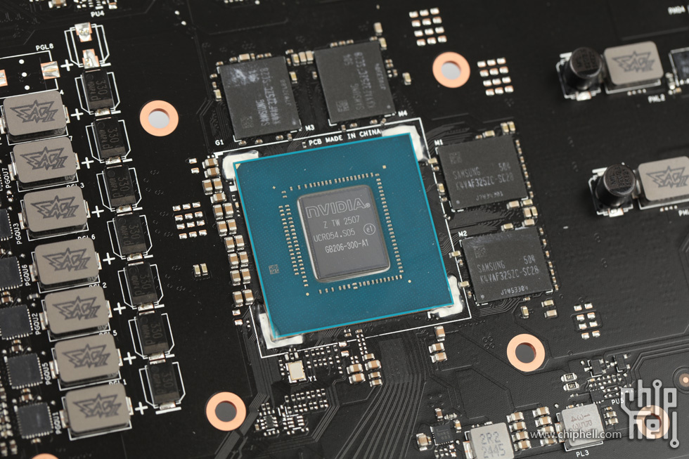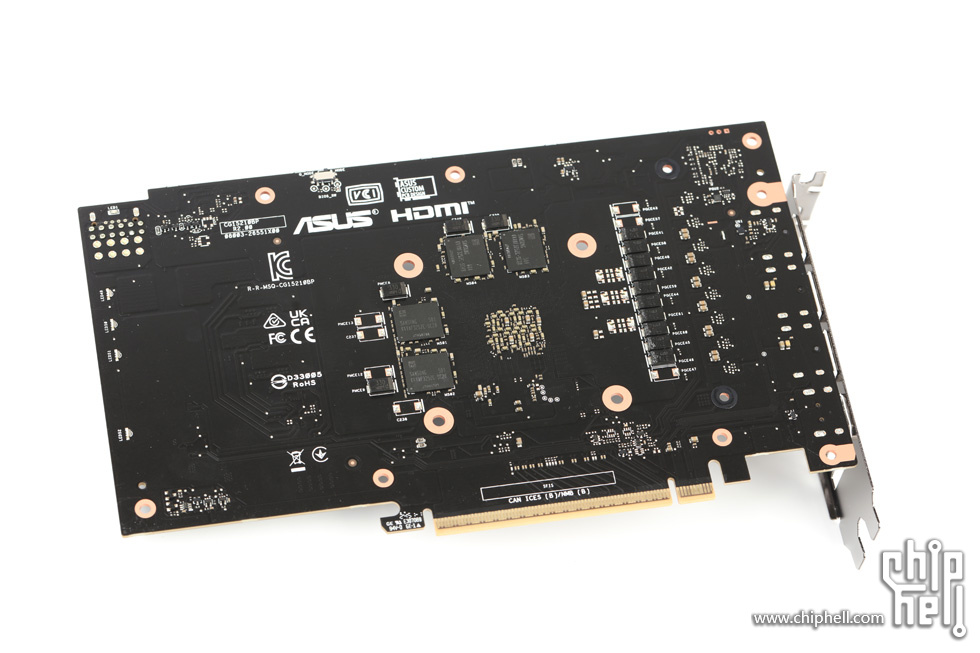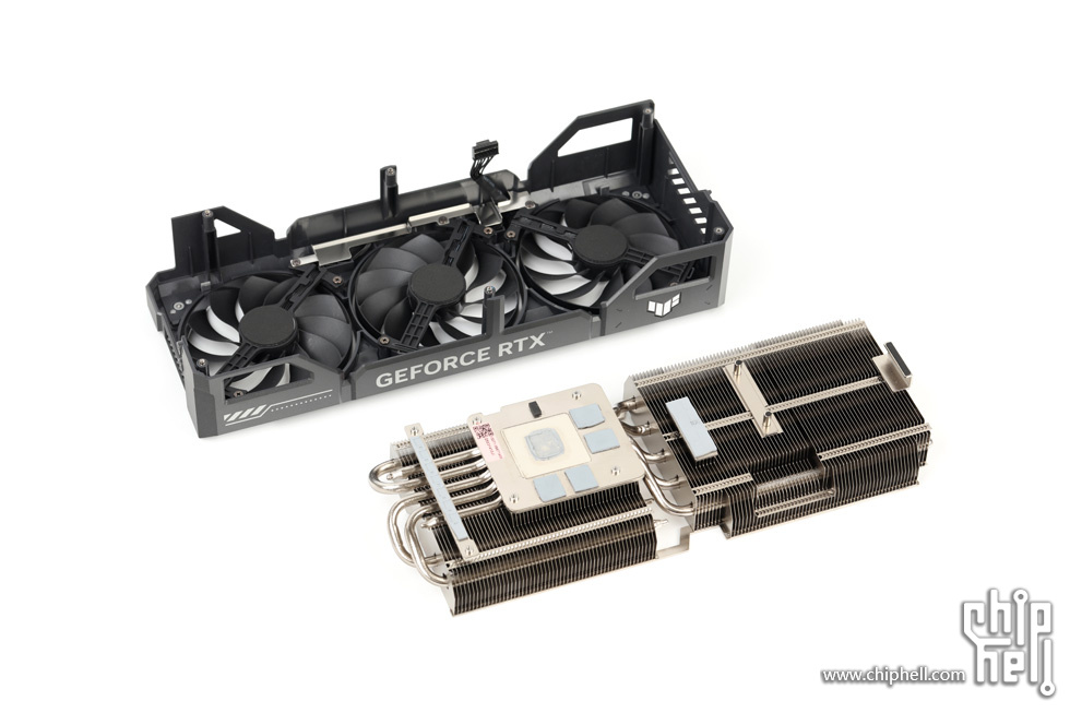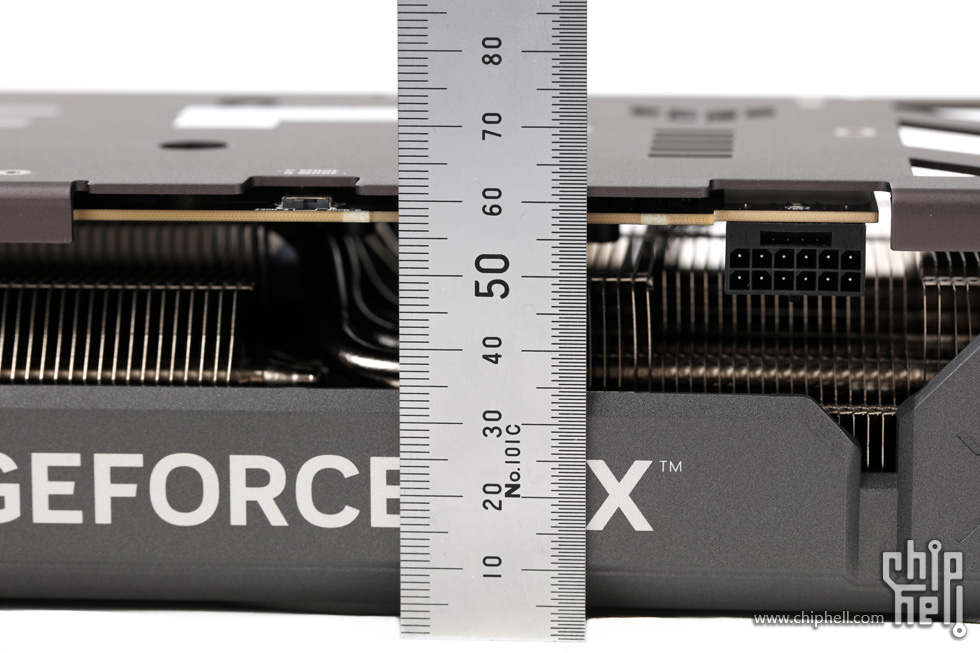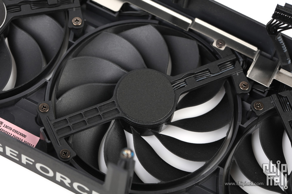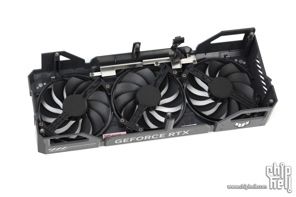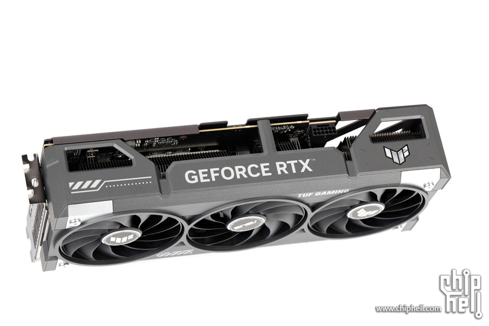 包装设计与同期同代的TUF Gaming系列显卡保持一致: 采用正面黑底侧面白底的撞色搭配.以品牌概念图为底.搭配产品正面渲染图与品牌商标.靠NVIDIA统一样式的腰封做区别. 内层包装印有TUF Gaming Logo和主题系列的各式图标印花. 附件包括说明书,感谢卡片和TUF系列标配的可靠性认证卡. 一条电源转接线.规格为两个传统PCIe 8-pin母口转单个16-pin(12V-2x6/12VHPWR通用)公头. 一根简易的两用式磁吸支架/螺丝刀.搭配了对应TUF Gaming的配色,Logo和涂装.造型上与本代ROG款中配有的款式相同. 显卡正面.造型和配色上延续了TUF系列近年来枪灰色的硬朗风格.细节上也与同期上市的TUF Gaming系列主板相照应.结构与上代TUF Gaming显卡相同.且依旧是搭配传统经典的大尺寸开放式三风扇散热器. 显卡背面覆盖与正面外壳相同颜色的金属背板.但与70级的几款有了显著的差异.由于GPU核心较小,散热器没有配备背框.背板图案上也去掉了横条装饰纹. 平行于挡板的白色GeForce RTX标识和位于前半区大尺寸的TUF Gaming标识. 较短的板型设计给散热器加长区域留出吹透区域.背板的开孔中仅以斜杠加强而不再试图融入TUF Logo的造型. 背板后半位置嵌入了以TUF Logo和能量条风格的RGB灯标. 透明双层风格提升了质感. 双BIOS切换开关. 输出接口为三个DP 2.1b和一个HDMI 2.1b. 半封闭的正面外壳上的斜纹开窗装饰. 显卡顶部. 靠近挡板侧的支撑包围和涂装. 大尺寸的GeForce RTX标识印于中心区域. 尾部不再采用RGB灯标而是一个抛光亮面的TUF Logo. 传统朝向的16pin(12V-2x6)电源接口. 显卡底部. 前部警戒线风格的涂装和ASUS总部地址坐标字样形成的装饰. 尾部则是大尺寸的TUF Gaming的Logo和Stay Tough的标语. 包围式的显卡尾部.背板弯折后提供固定孔位. 中心区域留出与挡板侧相似的斜纹开窗装饰区以及TUF Gaming刻字. 正面面板. 边缘边角统一的斜切面处理. 四角带饰钉锁固装饰的亮面贴片. 装甲样式的造型分区.拉丝风格的表面搭配品牌Logo和标语装饰. 首尾两端位置,风扇外框装饰圈上也刻有品牌标语. 三把同尺寸的十一叶风扇. 中置风扇方向相反以优化整体风道.轴心贴有ASUS Logo装饰贴. 两侧的风扇轴心贴有TUF Logo装饰. 连框式扇叶结构和优化的扇叶造型. 风扇直径尺寸规格规格为93mm. 显卡长度(不含挡板)约302mm. 高度(含挡板)约150mm. 厚度约62mm. 分解. 风扇外壳内侧. 风扇锁固支架. 风扇并线后的统一接头. 底边位置配有额外的加强支架. 散热片模块正面. 近核心侧的散热片在靠近风扇一面,对应于GPU底座位置中轴作V字开槽. 散热片中轴做了扣边.远核心段的散热片的靠外侧边缘还有波浪锯齿状的扰流优化. 散热片模块底面. 镀镍铜底覆盖GPU核心.采用相变硅脂作为导热介质.显存颗粒则由固定底座板覆盖.. 底座区域上方空间也填充了散热片. 额外的底座覆盖供电MOSFET.对应位置散热片针对性调高接入. 散热器配备5条6mm热管.近核心段上在离开底座后为便于加工仅以半包贴于散热片边缘.其中靠中心的三条热管在外部回穿入靠近边缘侧的内部. 5条热管在中段位置改变走向穿入远核心段的散热片.三条回穿的热管贯穿了近核心段散热片后头部止于中段空间. 五条热管在远核心段的散热片正中一字等距排开. 远核心段的散热片阵列.散热片造型采用阶梯状.为排风留出空间. 散热片模块两侧的结构排列. 俯视和侧视角度可以更清晰观察整体结构和热管走向. 背板内侧.显存,供电以及电源接口位置都配有导热垫使背板辅助散热. 灯标位置背部贴有垫片防止漏光以保证观感. 板卡正面.为了适配散热器固定特意加大了板型. 板卡背面. 对应于GeForce RTX 5060 Ti的GB206-300 GPU. 显存由8片Samsung 16Gb 32bit 28Gbps GDDR7颗粒以双面布局组成16GB 128bit 28Gbps的配置. 7相GPU供电和2相显存供电. 供电主控uPI uP9512R. GPU供电每相搭配一颗uPI uP9646A DrMOS MOSFET. 显存每相供电MOSFET为uPI QN3104 + 2* QM3106上下桥组合. AURA灯控芯片提供RGB灯光同步控制. |