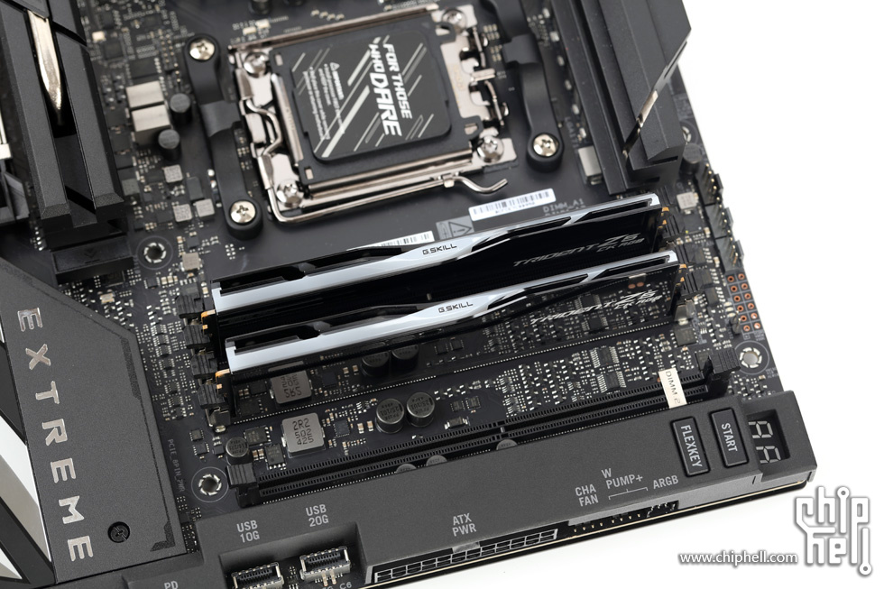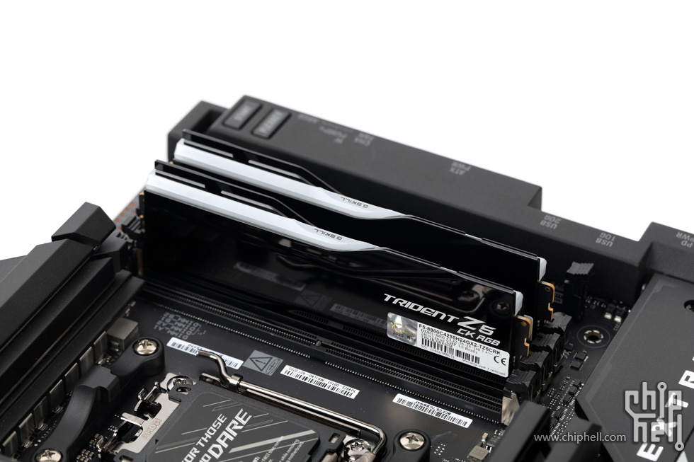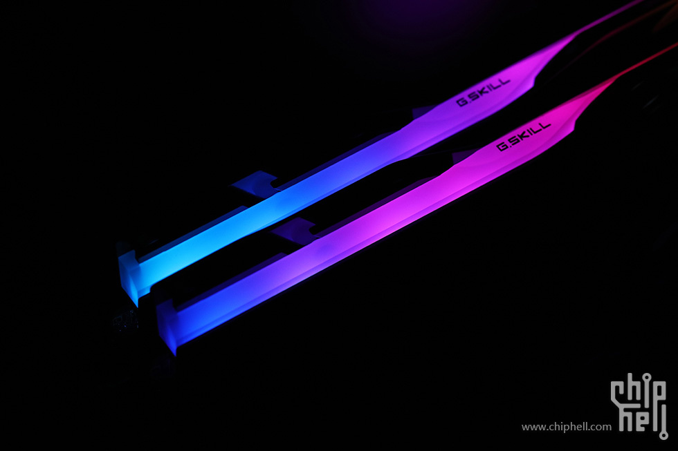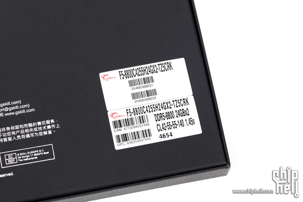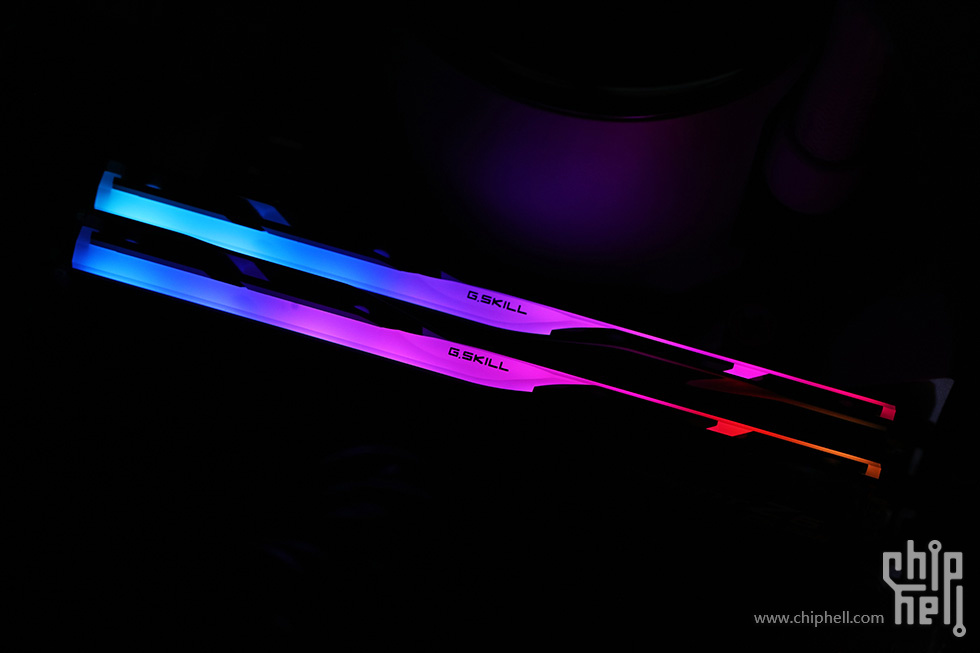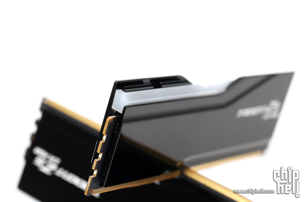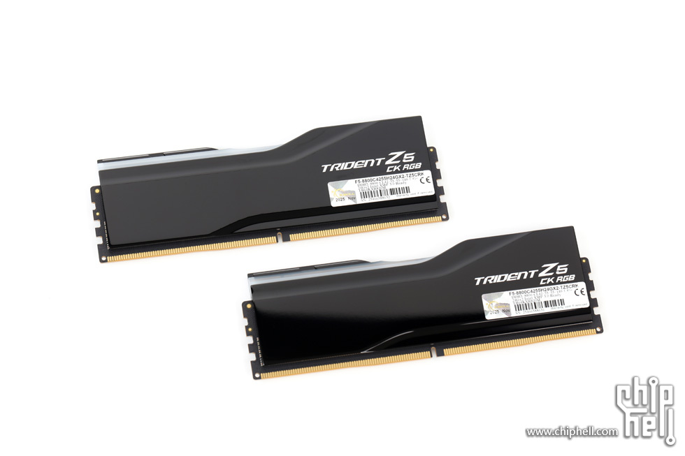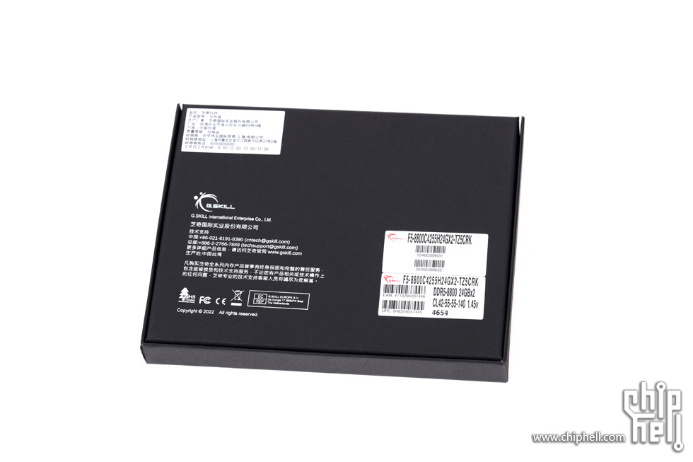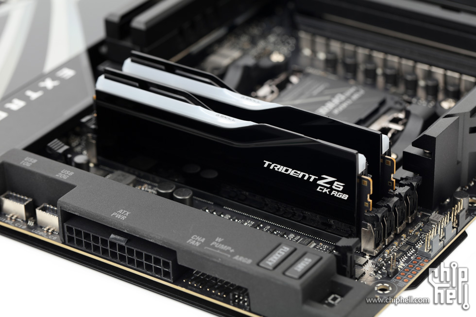 外包装采用黑色礼盒样式,中间绑带印有内存型号,包装右下角贴有“For Intel Z890 Only”标识. 取下绑带后可以看到G.SKILL的LOGO. 包装盒背部,则是印刷了一些产品和公司信息. 位于右下角处的内存的型号标签. 翻开盒盖,可以看到被放置在减震泡棉中的内存. 盒内其余附件,包括1块细绒擦拭布,1张LOGO贴纸,以及1张信息卡片. 取出内存,可以看到内存整体为黑色,表面采用钢琴烤漆工艺. 同时设有上下立体分层式的挖槽设计,使观感更加富有层次. 位于散热马甲右侧的Trident Z5 CK RGB型号字样. 内存背面的设计与正面完全一致. 唯一的区别是背面右侧下部贴有型号标签. 内存顶部依旧是熟悉的斜线对称式RGB灯带设计. 家族式的对称式翻转设计,并在中部交错处印有G.SKILL的LOGO. 半透白的导光条,并延伸至正面区域. 以斜面作为顶部和正面的过渡. 左右两侧都是三层的叠加设计,除了第一层的RGB灯带,后方的开槽鳍片式设计除了装饰也有助于增加散热面积和气流通过. 内存底部视角,可以看到为单面颗粒设计. 内存高约为43mm. 上机后距主板PCB约44mm. 上机图赏. 默认RGB动态灯效. 静态灯光细节. |
