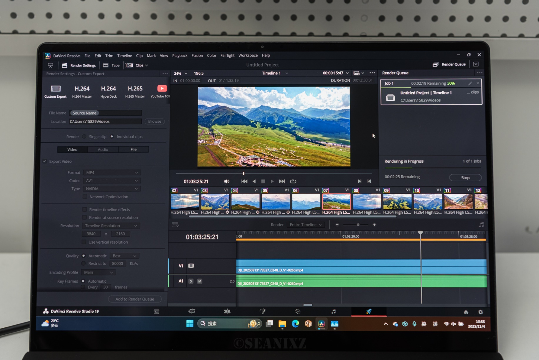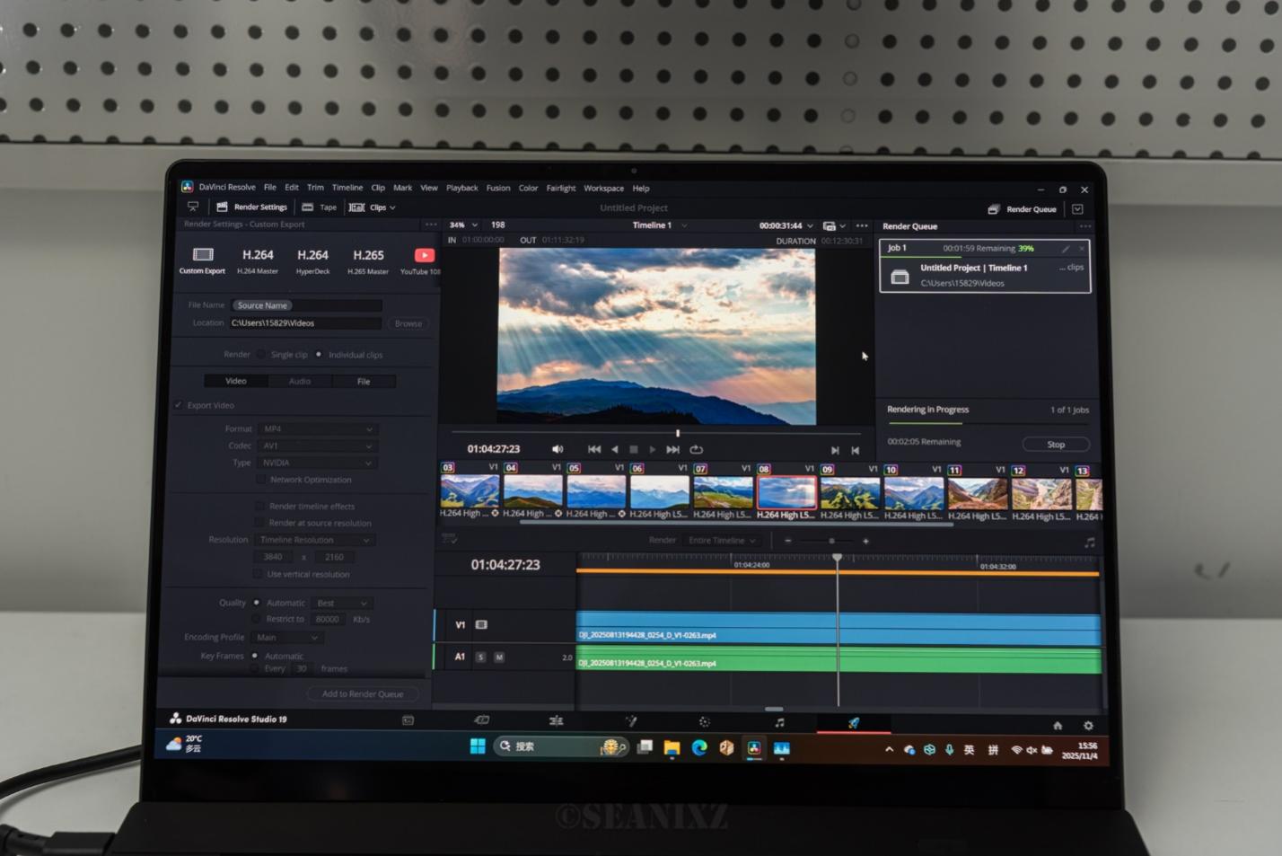 四、效率实测:Lightroom与达芬奇工作流性能翻倍硬件升级的最终目的是提升软件使用的效率与体验,下面测试一下常用的创作软件效率。 Adobe Lightroom Classic: 在处理我尼康Z8相机和航测回来的上千张RAW格式照片时,华硕ProArt 创16 2025的响应速度明显更快。无论是图片的批量导入、预览生成,还是在进行细节锐化、镜头校正等吃性能的操作时,卡顿感基本消失。