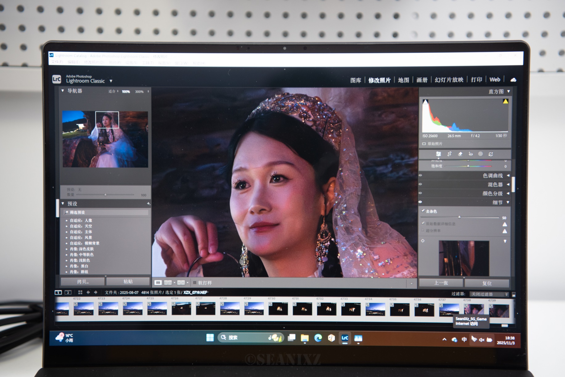三、视觉基石:4K Tandem OLED华硕好屏的专业色准与细节作为摄影师,屏幕是我们与作品对话的窗口,它的素质至关重要。老款4070笔记本的2.5K屏本身是一块高素质的游戏屏,但对于专业创作,从老款4070笔记本切换到华硕ProArt 创16 2025的这块4K Tandem双层OLED屏,带来的提升是颠覆性的。