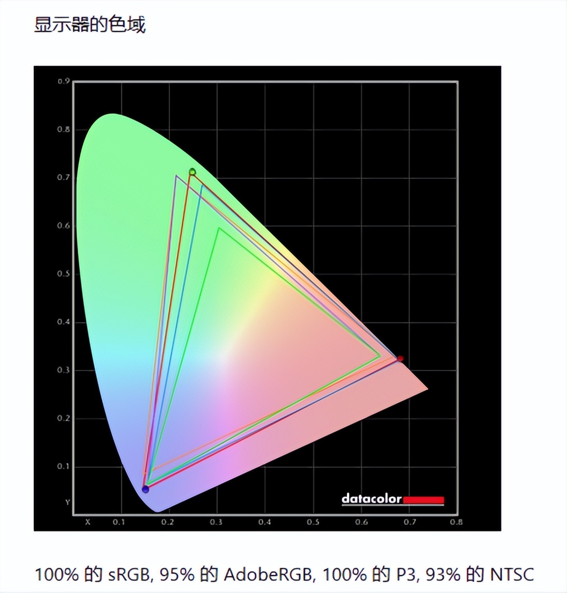 官方标称100% DCI-P3色域,我使用校色仪简单测试后,表现完全符合甚至超出预期。
