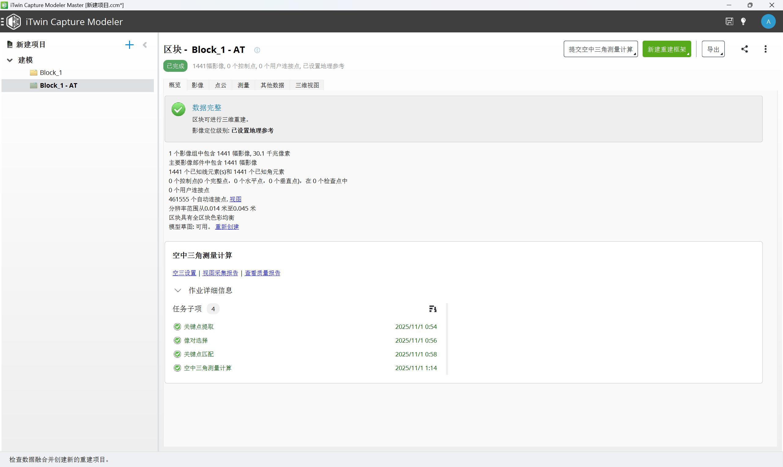 五、 测绘工程软件实战:iTwin Capture Modeler这是我的核心生产力工具,用于将航拍照片转化为实景三维模型,后期再用CAD画二维图计算面积土方结算等工作。 记录了一下使用华硕ProArt 创16 2025处理同一个航测三维重建项目(约1400张照片):