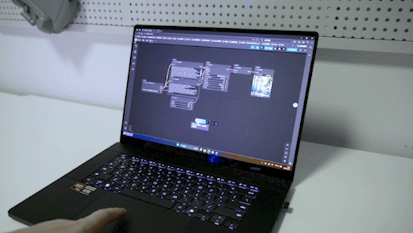 体验提升: ● 成倍的速度提升:老款4070笔记本用了30秒的任务,华硕ProArt 创16 2025 在RTX 5090 加持下10秒以内可以完成,极大的提升了效率,创意来了的时候不卡壳。 ● 复杂工作流无压力: ComfyUI最大的优势在于处理多步、条件化的复杂生成任务。例如,我常用的“线稿上色->图生图重绘->高清放大”工作流,在老款4070笔记本上会因显存不足而频繁中断。而在华硕ProArt 创16 2025上,整个工作流可以毫无阻碍地运行,24GB显存为复杂的数据流转提供了巨大的缓存空间。 ● 极速加载:RTX 5090的强大算力配合PCIE 4.0高速固态硬盘,使得加载数GB的模型库几乎在瞬间完成,大大减少了等待时间。 ● 现场演示的利器:在向客户展示AI概念设计时,我可以直接在ComfyUI中搭建一个工作流,实时调整关键词或控制网(ControlNet)参数,几分钟内就能生成数种不同风格的效果图。这种“所想即所得”的交互能力,极大地提升了沟通效率和专业形象。
