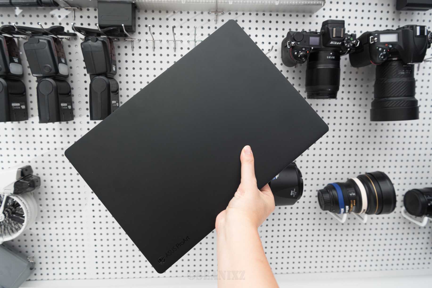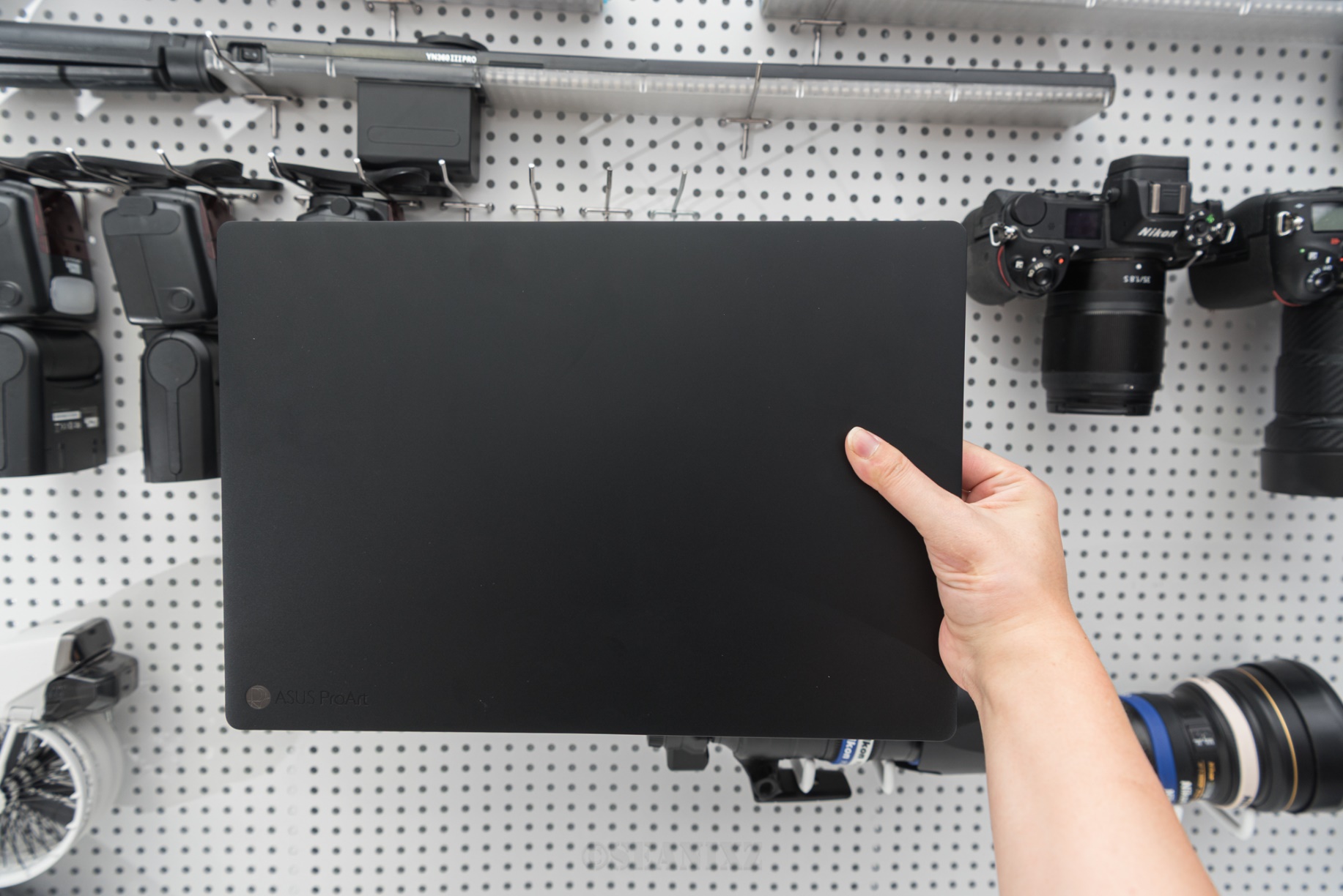 A面仅有简洁的ASUS ProArt徽标,设计语言沉稳内敛,无论是带入会议室还是咖啡馆,都显得非常专业,毫不张扬。 这种克制低调但深有内涵的调调,正是专业用户所追求的高级感。