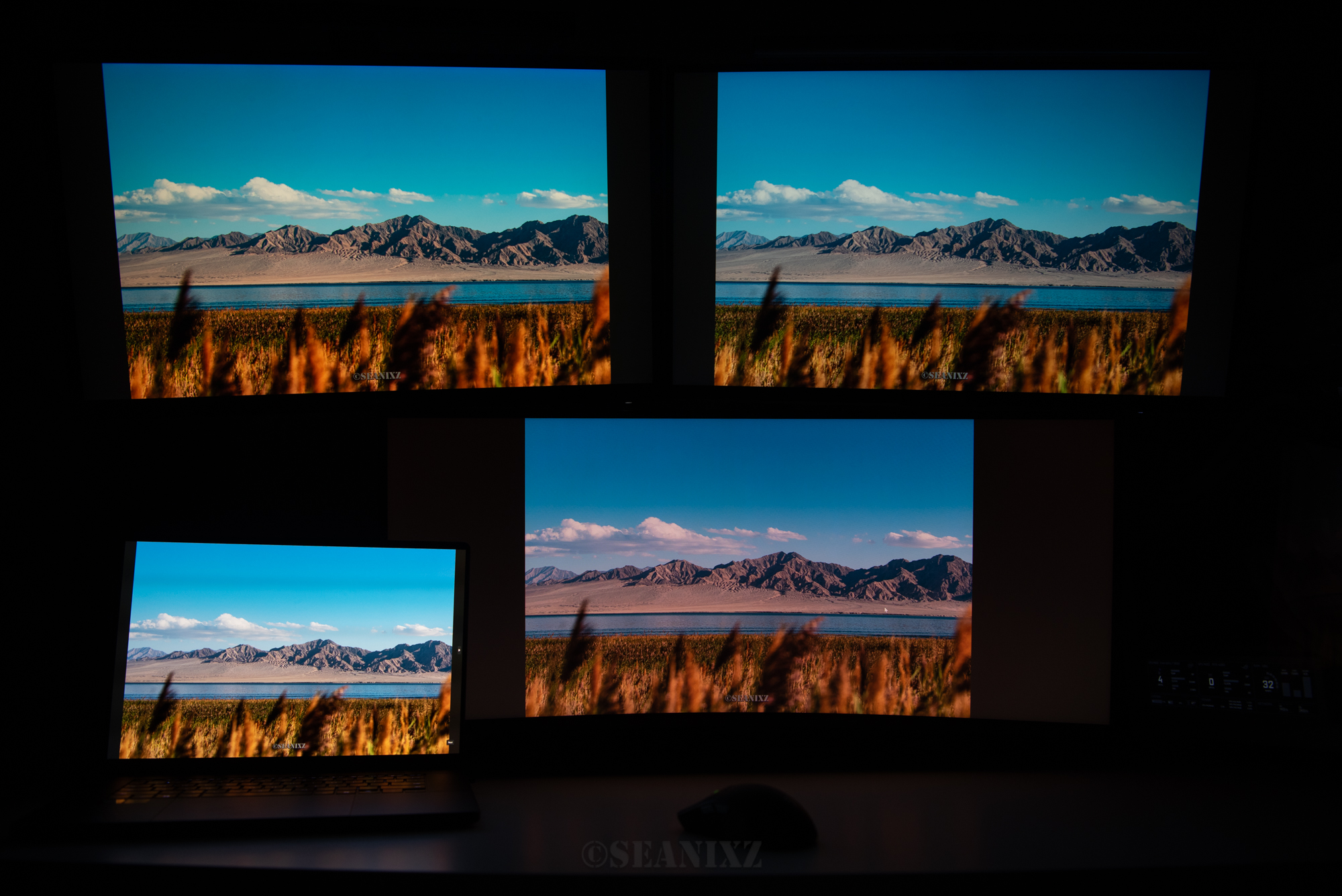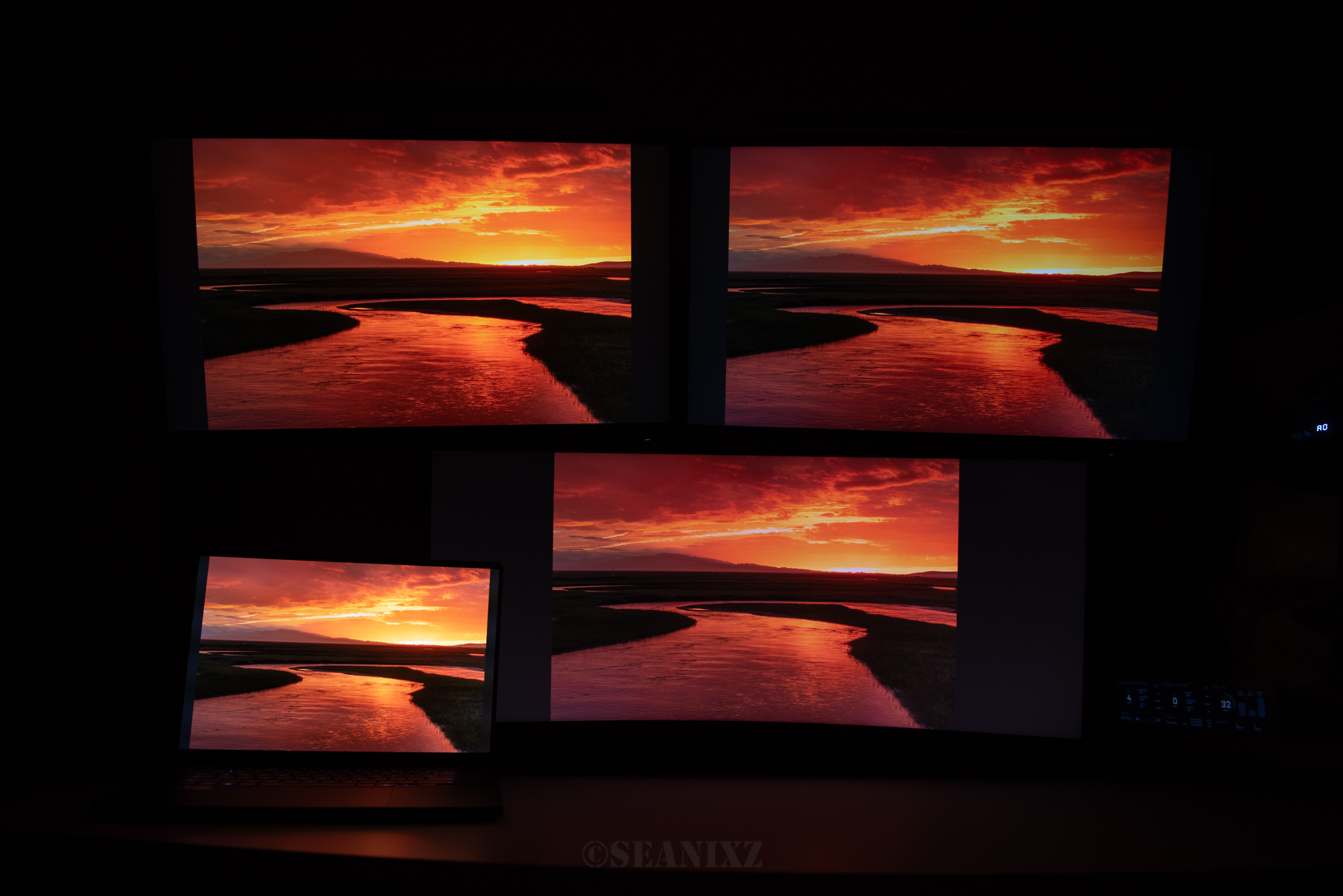 最直观的感受来自对比度,得益于双层OLED结构,对比我的三台显示器亮度表现和色彩还原度远超普通OLED。