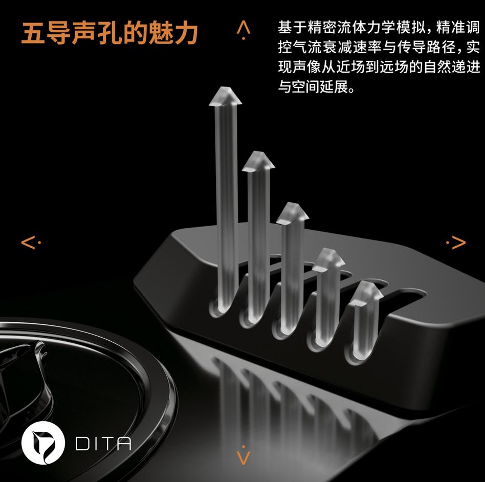 这里可以类比音箱上常见的,导气孔装置。当然,气孔形状、长短等,是通过计算模拟+试验而来——Dita有提到,使用流体力学模拟、演算,匹配内部4个精密声腔,最终为Ventura量身打造了一整排的五导声孔设计,实现调音目标。