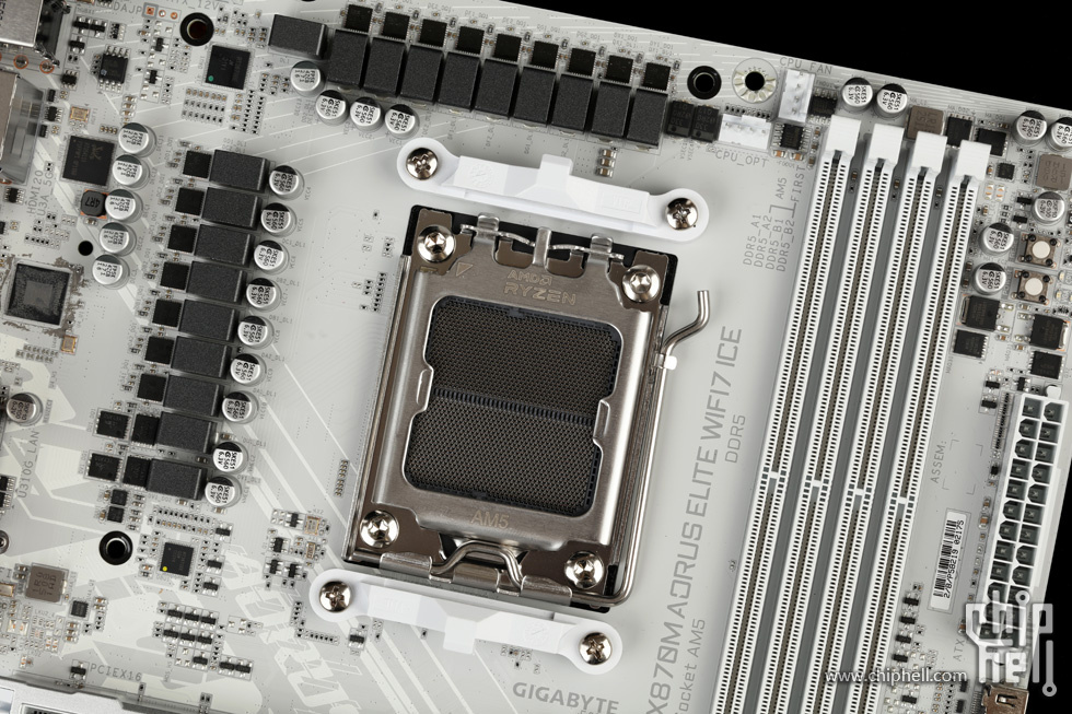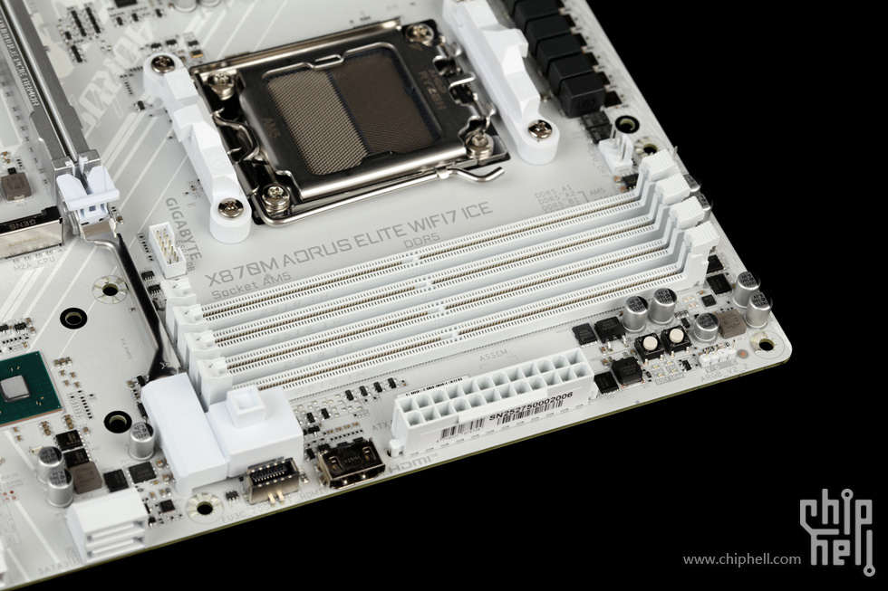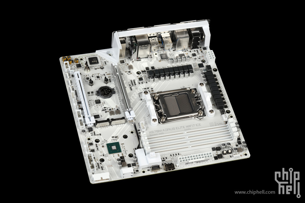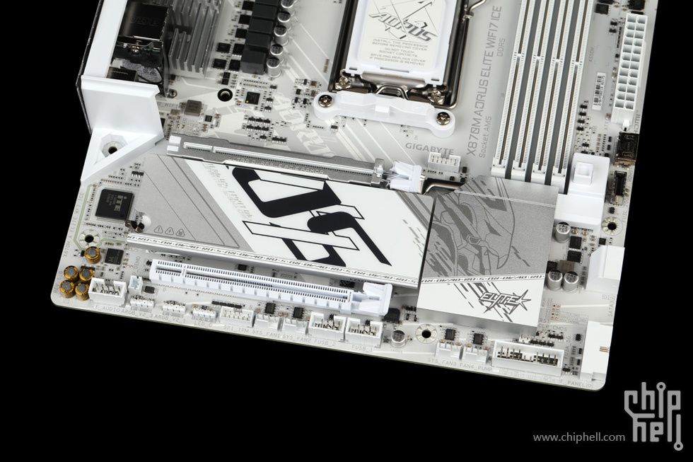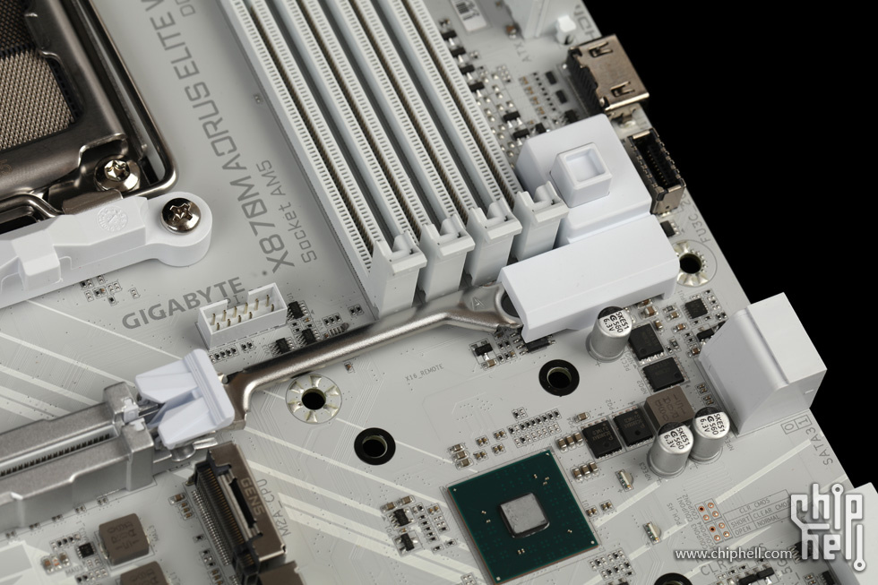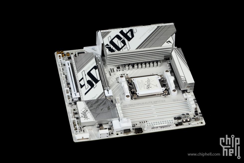 外包装整体为白色,并印有AORUS系列的LOGO. 附件包括说明书和保修卡. 立式Wi-Fi天线一副. SATA硬盘线两根. 对应配套数量的M.2 SSD安装槽附件. 辅助插针工具一个. 主板本体,背面仅在PCIe槽处设有加固. PCB整体采用灰色作为底色,并配以少量白色进行装饰. 主板本体正面,采用白色作为主色调,加入一些银色元素作为点缀装饰. CPU供电和散热模组,采用主流的L型排布. 散热模块侧面均设有多道横向开槽,以增加散热面积. 背面视角,可以看到其背部和内侧还有额外的散热开槽设计. 顶段散热模块的装饰图案. 后段散热模块. 散热模块顶盖部分,同样采用白色和银色作为配色. 右上角处的AORUS系列LOGO. 中部的AORUS系列装饰字体. 供电散热模组. 散热模组均通过导热垫接触MOSFET和电感,接触面压力良好. 散热模组配以一根热管,贯穿两个散热模块,用于更好的均衡发热 去除主供电散热模块后,还可以看到在I/O段内侧还隐藏着一块小散热模块. 底部设有散热垫,用于USB 4主控芯片的散热. 后方I/O接口,设有1个Clear CMOS按钮,1个Q-FLASH按钮,4个USB 2.0接口,1个HDMI 2.1接口,4个USB 5Gbps Type-A接口,2个USB 4接口(支持DP 1.4集显输出),2个USB 10Gbps Type-A接口,1个2.5Gbps有线网口,Wi-Fi 7无线网卡双天线接口,以及一组2个3.5mm+1个S/PDIF光纤的音频输出组合.值得注意的是,挡板上设有少量通风孔,可以略微增强I/O处的散热. 主板中下部,为PCIe扩展区,M.2 SSD插槽以及芯片组区域. 左侧M.2 SSD散热片与右侧芯片组散热模组. M.2 SSD散热片的解锁机构位于左下角,向上拨动即可解锁弹起. M.2 SSD散热片正面. 散热片侧面,厚度中规中矩. 散热片内侧,设有对应的2条导热垫. 两根M.2 SSD插槽,无散热背板. 芯片组散热模块,底部设有RGB灯珠. 开机通电后的效果. 散热模块右下角的ELITE装饰字样. 从侧面看芯片组散热模块,整体较厚. 卸下的芯片组散热模块. 散热模块内侧,采用相变片进行导热. 主板正面无遮挡. AMD AM5 LGA1718插座,支持Ryzen 7000/8000/9000系列CPU. 单8pin的CPU供电输入接口. 供电规模为14+2+2相. 其中14+2相搭配NCP302155 MOFSET (60A). 供电主控为RT3678BE,位于主板左上角. 设有四条DDR5内存插槽,原生最大支持5600MHz,可超频至最大8200+MHz,容量最大可安装256GB(4*64GB).支持EXPO/XMP一键超频. 两条PCIe扩展插槽. 上方是一条由CPU提供的加固型PCIe 5.0 x16全长插槽. 插槽尾销配备技嘉显卡快易拆机构. 位于主板下部的第二条扩展插槽,由芯片组提供,速率为PCIe 4.0 x4. 主板右下角,配有两个原生SATA3接口和一个前置USB 5Gbps接口. 中部位置设有一个前置USB 20Gbps Type-C接口,以及一个前置HDMI 1.4接口. 主板背面的RTS5464芯片,为前置Type-C接口提供支持. 还有两组USB 2.0前置接口,位于主板底部. 主板配有四颗LED自检DeBug灯,位于内存插槽上方靠右. 共配有6个风扇接口,以及4组ARGB接口. 其中两个CPU风扇接口位于内存插槽顶部左侧,而右侧设有一个ARGB接口. 三个ARGB接口和两个系统风扇,位于主板底部. 一个机箱风扇和一个水泵专用接口,均位于主板右下角. 主板音频区域,基于Realtek ALC1220 Codec方案. AMD X870芯片组. IT8696E和IT5711E芯片,用于监测主板各项参数. RT3672EE芯片,负责控制外围I/O. RTL8125D芯片,提供2.5Gbps有线LAN网络支持. ASM4242控制器,为USB 4接口提供支持. RTS5411S芯片,为后部USB 5Gbps接口拓展. GL850G芯片,提供USB 2.0接口拓展. Wi-Fi网卡为RTL8922AE,支持Wi-Fi 7和蓝牙5.4规格. |