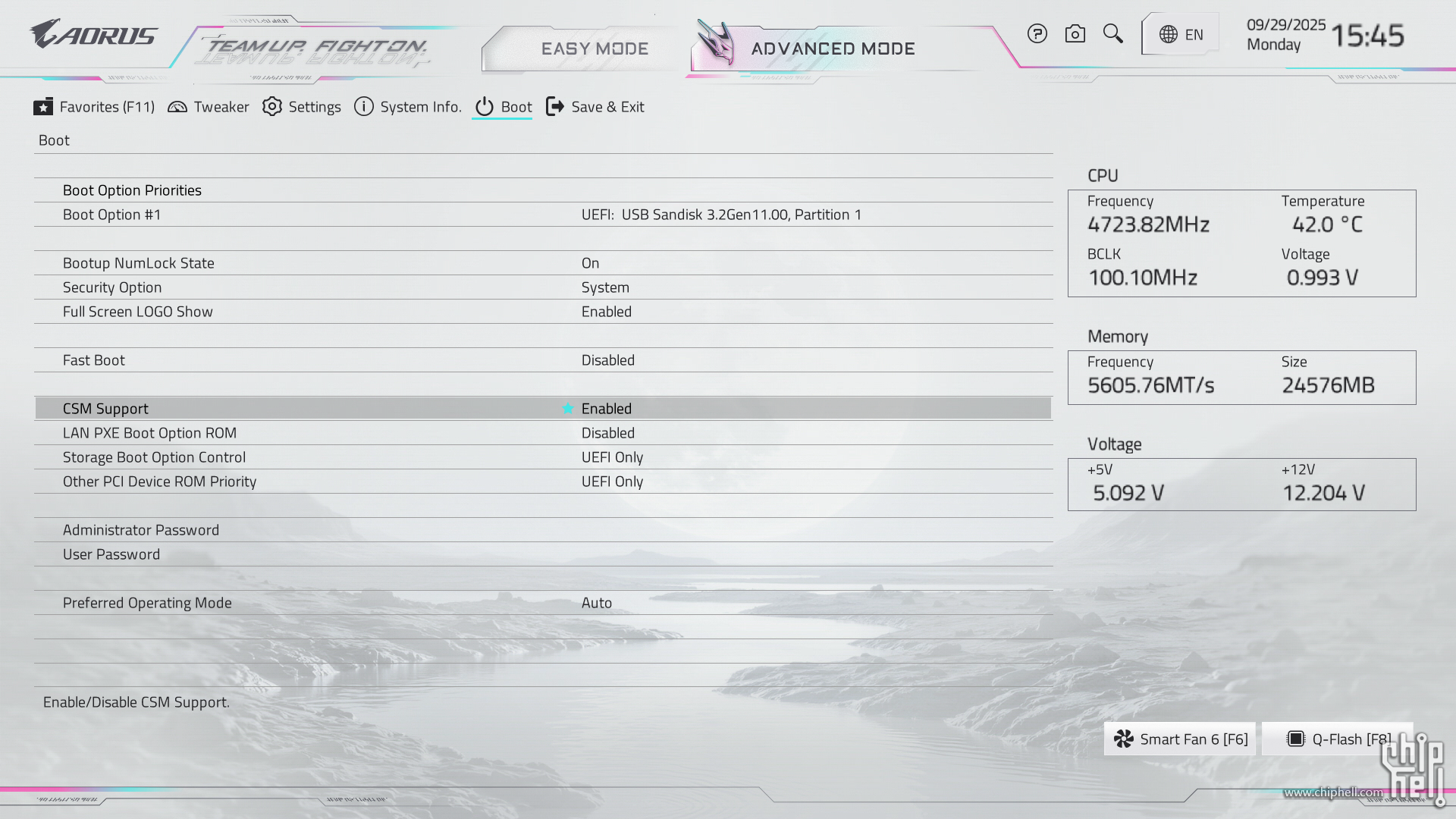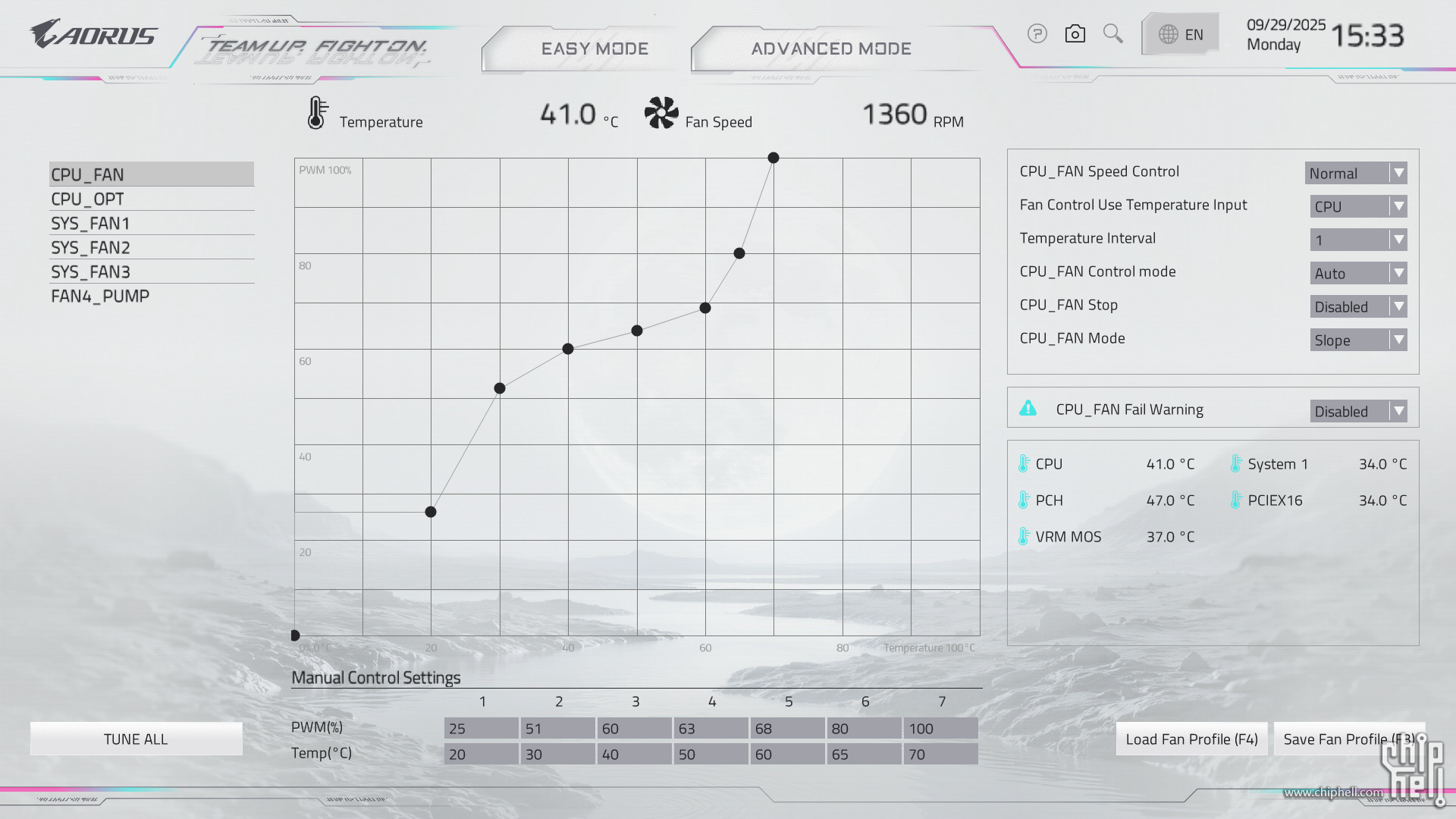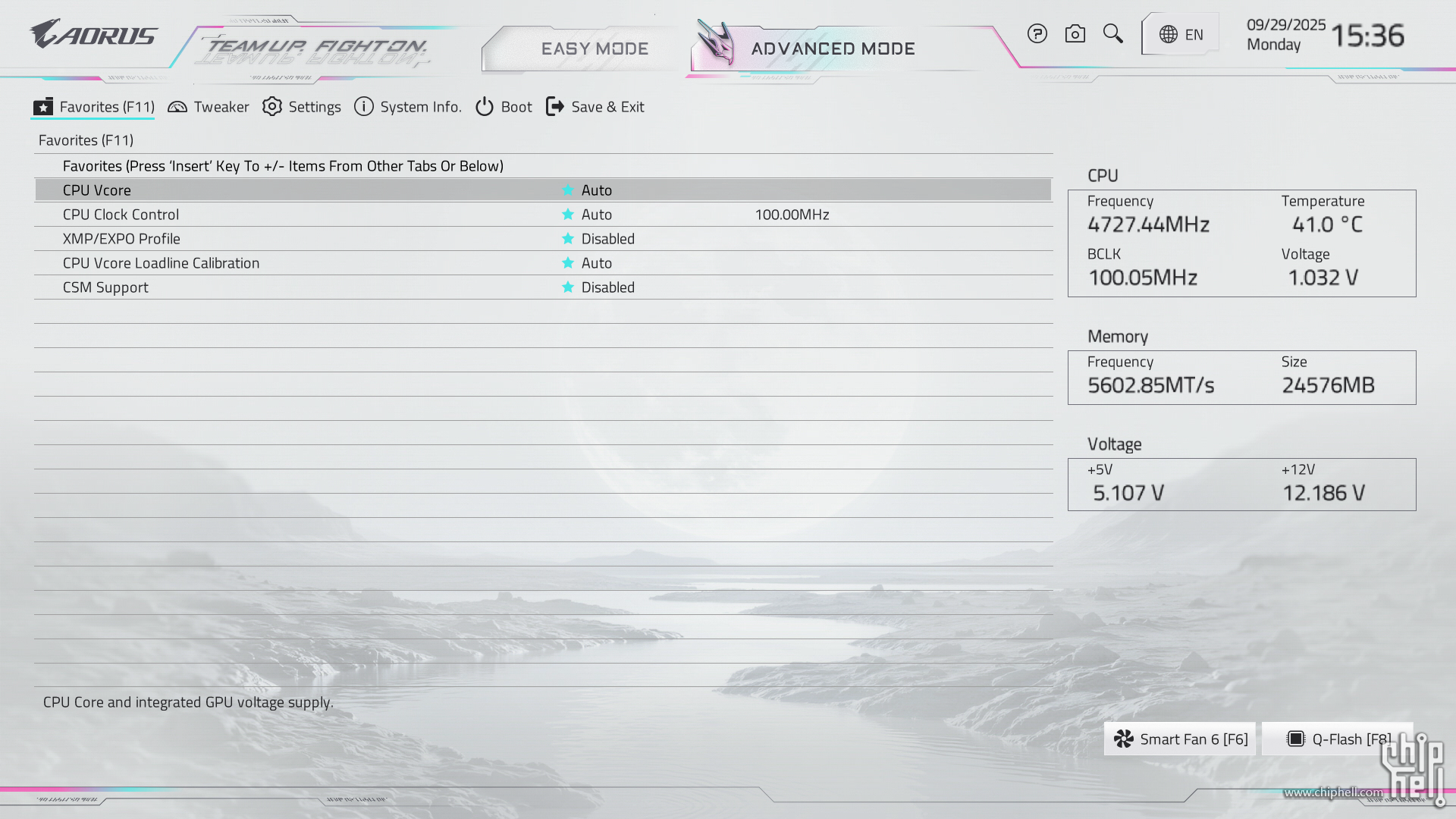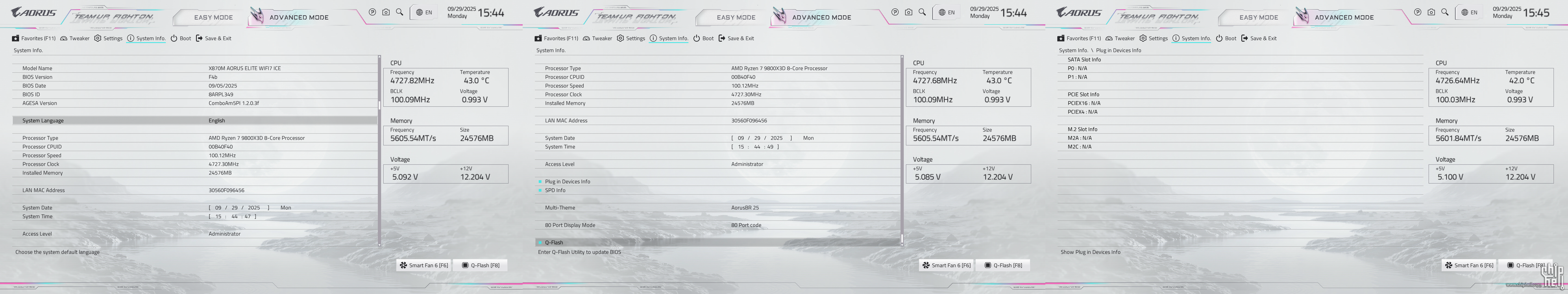 全新设计的界面布局,维持技嘉一贯的扁平排布风格,并使用白色为主题色. 进入BIOS后默认为简易模式,可查阅一些基本信息,并可快速调节一些例如XMP/EXPO开启,Smart Fan风扇调整,X3D Turbo Mode功能,Q-Flash更新BIOS,内存SPD信息和配置等. Smart Fan风扇调整提供了图形化的界面,可供用户更加方便的进行自定义. Q-Flash和内存配置相关页面. 按下F2切换至高级模式,默认切换到Favorites主菜单,可以收藏选项来方便快速进入. Tweaker主菜单,提供了各种与性能相关的调节选项.包括CPU频率,内存频率以及对应的电压和功耗等条目. PBO选项,提供手动模式,可使得高阶用户可以进行更加精细的手动调节. Curve Optimizer电压曲线优化设定,通过调节PBO电压对应的频率曲线,可以实现降压超频. 内存XMP/EXPO配置文件一键载入,并设有对应调节的选项. 电压控制子菜单,如CPU核心和PM,Misc等电压数值的调节. 主板提供可调节的电压条目,模式,数值: CPU防掉压设置,设有Auto/Normal/Standard/Low/Medium/High/Turbo/Extreme总计8个调节选项. Settings主菜单,包含电源选项,I/O接口,AMD CBS设置,AMD超频选项以及电脑状态. 进入AMD CBS设置. 内存时序控制,提供了比较详细的时序参数可供调节. CPU通用选项,可以对核显和音频进行调整. System Info主菜单,可以看到当前主板的状态. Boot主菜单,可以修改启动选项. |