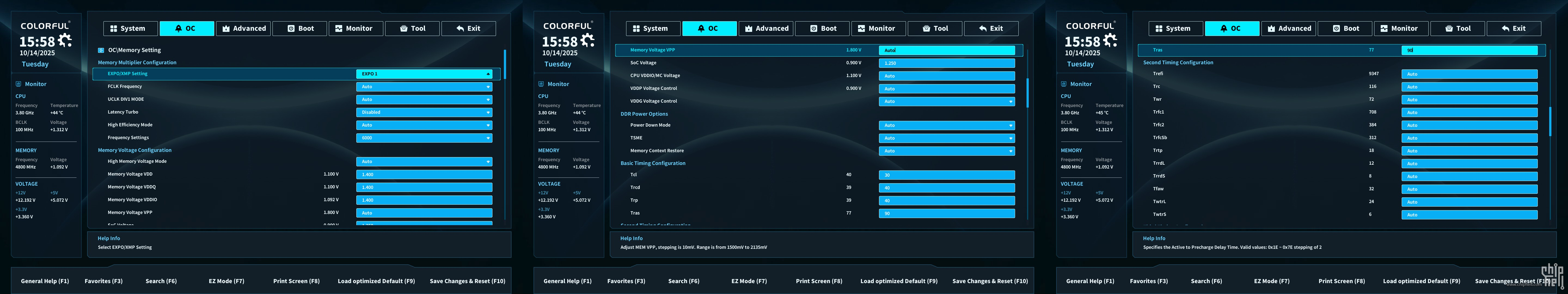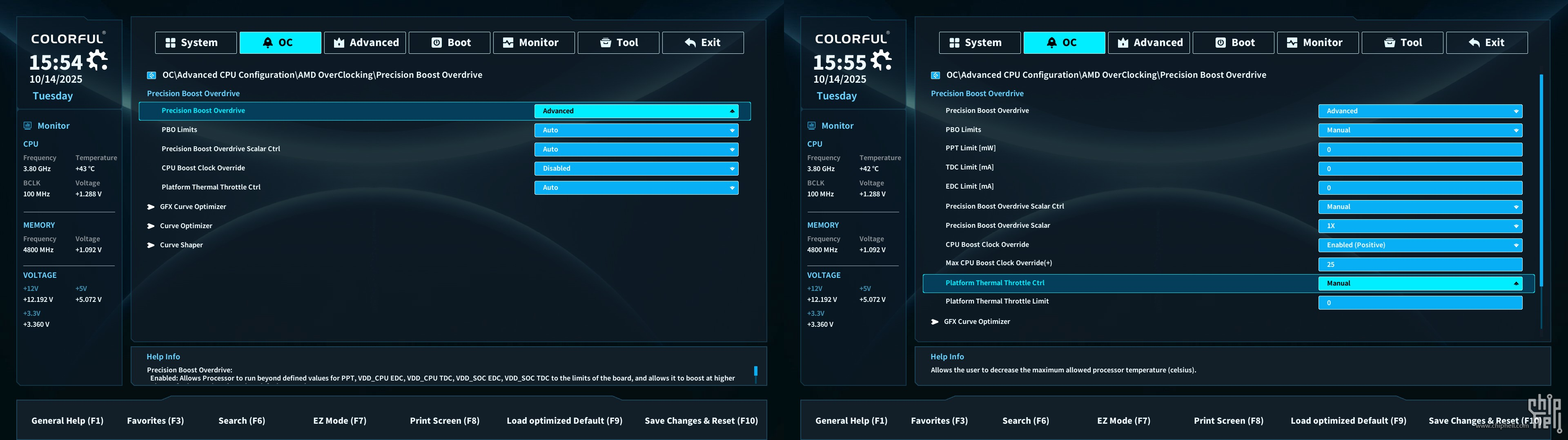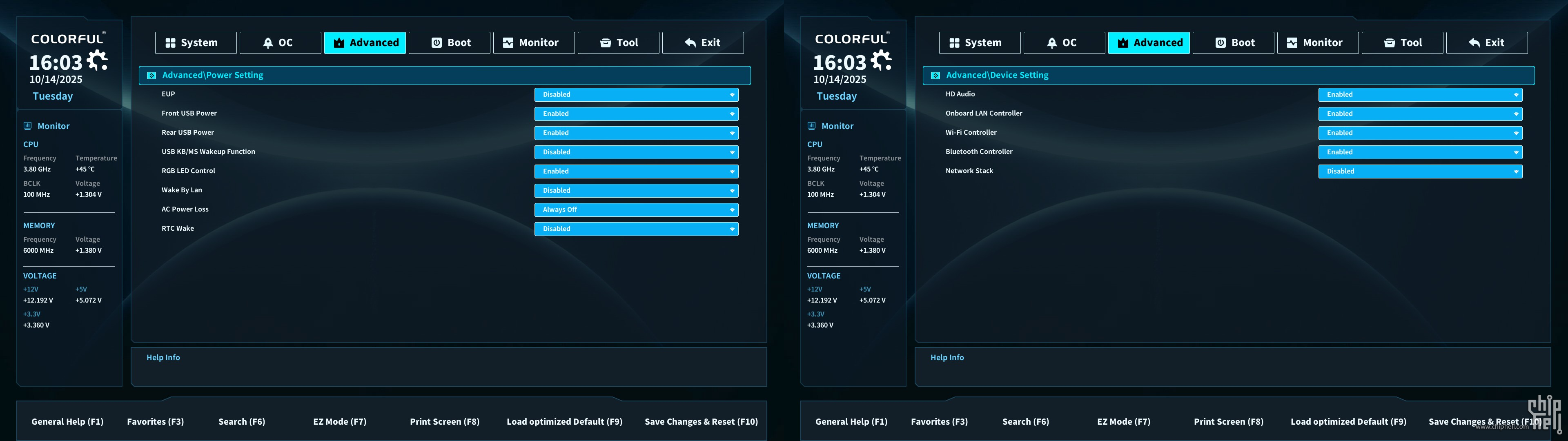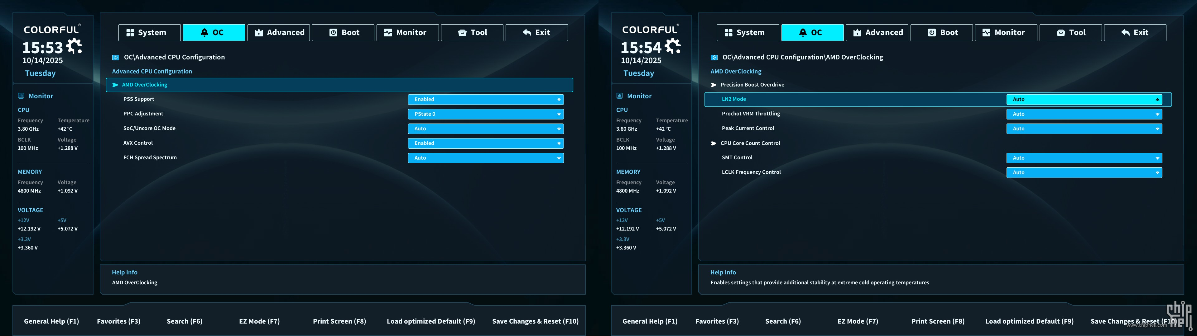 界面为全新高清化风格,布局都做了重新设计,整体逻辑更加清晰简介. 进入BIOS后默认为EZ模式,可对主机运行状况进行一个概览,可一键开启PBO,并提供一些例如XMP加载,外围设备开关等常用的快速设置,并提供图形化的风扇曲线调整界面. 按下F7可切换为高级模式, 系统主菜单可查询当前的主板信息,以及查看所搭载的硬件信息. OC主菜单,提供与超频有关的各类可调选项.可调整对CPU倍频进行超频,并提供一键105W的TDP快捷开关,以及针对X3D系列处理器优化的游戏模式. 作为子菜单收录的高级CPU设定,设有PState调节,SOC/非核心全频率运行,AVX512,以及FCH展频设定开关.并提供AMD Overclocking层级菜单,可进行一些其他OC方面,例如SMT控制,LN2模式之类的高阶设定. 经典AMD PBO,除了自动和开启关闭模式以外,还提供高阶的手动模式,以及Curve优化修正. AMD Overclocking中还提供CPU核心计数控制. 内存设定子菜单,提供了相对完整的内存参数和相关设定可供调节,例如XMP/EXPO模式的选择,内存频率,FCLK频率,UCLK DIV1模式,延迟加速等,以及与内存有关的电压调节项目也在放置于在该页面中. 主板可提供的电压调节条目模式以及数值: Advanced主菜单,可对平台的一些特性,外围设备,以及若干杂项等进行设定. CPU特性,AMD CBS以及PBS选项也没有缺失. 电源及内置设备选项. Boot主菜单,可对启动的相关设定,以及引导顺序进行设定. Monitor主菜单,可查看CPU和主板的温度,各类电压等.风扇转速等实时运行参数.包括风扇接口的调节入口子菜单也被放置其中. 所有风扇接口均提供基本/全速/安静/手动四个预设模式.手动模式下支持4温度点曲线设定. Tool主菜单,提供U盘BIOS升级,BI0OS档保存,以及收藏夹功能. |