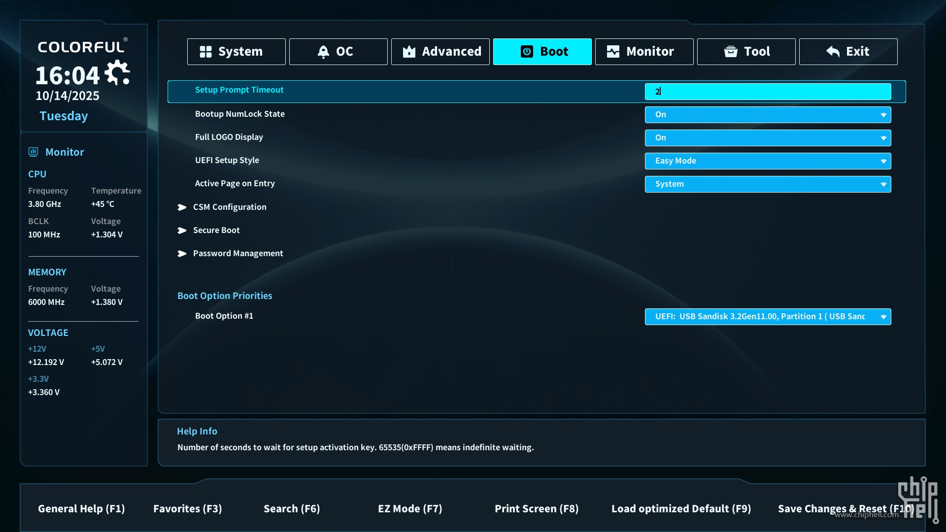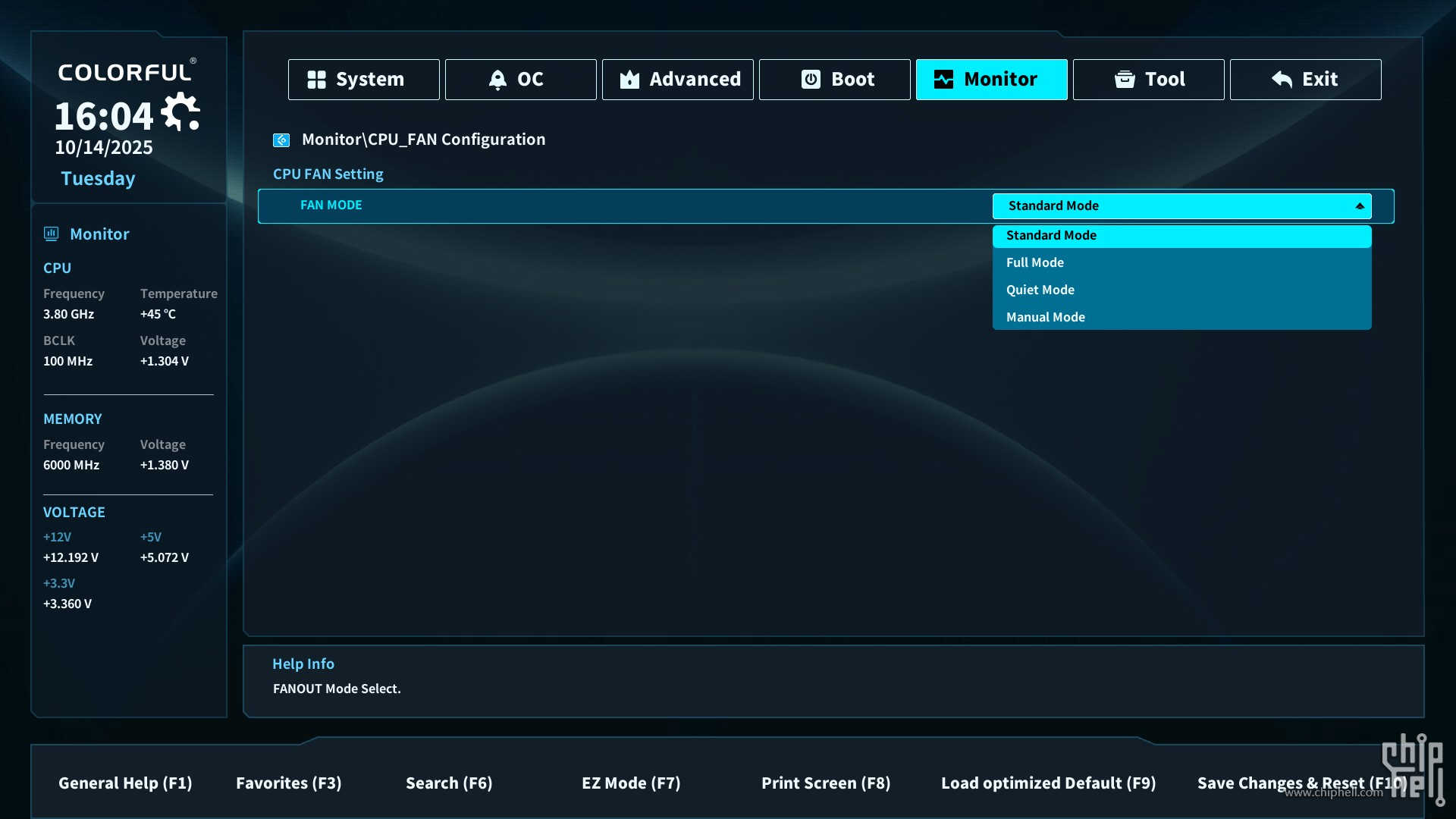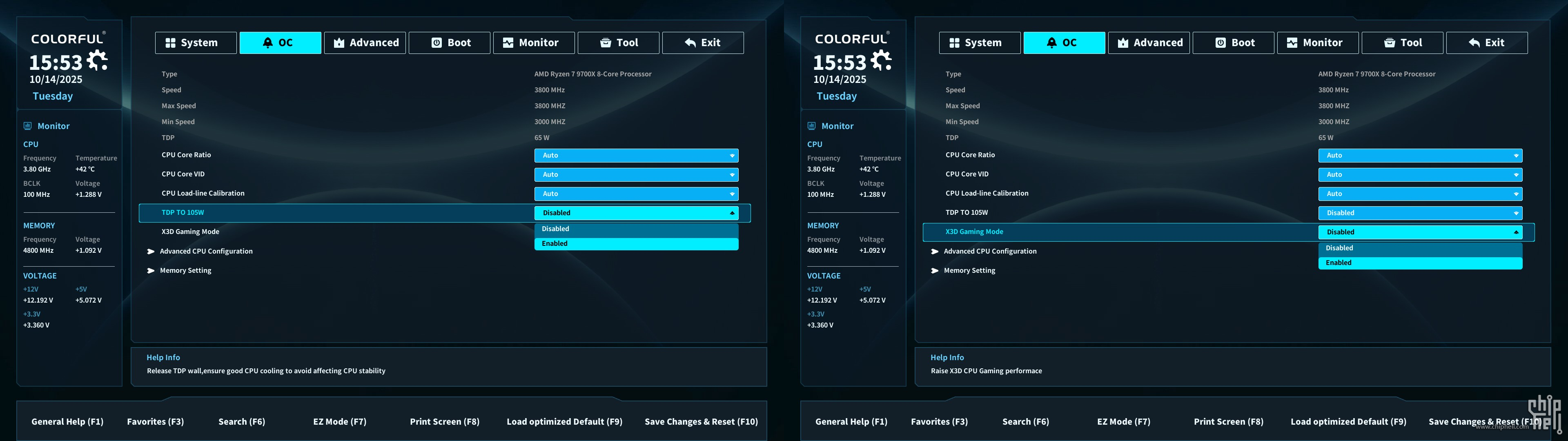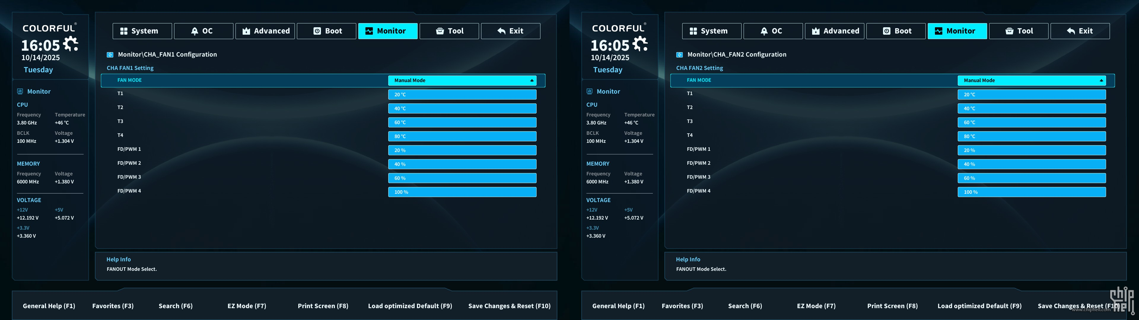 界面为全新高清化风格,布局都做了重新设计,整体逻辑更加清晰简介. 进入BIOS后默认为EZ模式,可对主机运行状况进行一个概览,可一键开启PBO,并提供一些例如XMP加载,外围设备开关等常用的快速设置,并提供图形化的风扇曲线调整界面. 按下F7可切换为高级模式, 系统主菜单可查询当前的主板信息,以及查看所搭载的硬件信息. OC主菜单,提供与超频有关的各类可调选项.可调整对CPU倍频进行超频,并提供一键105W的TDP快捷开关,以及针对X3D系列处理器优化的游戏模式. 作为子菜单收录的高级CPU设定,设有PState调节,SOC/非核心全频率运行,AVX512,以及FCH展频设定开关.并提供AMD Overclocking层级菜单,可进行一些其他OC方面,例如SMT控制,LN2模式之类的高阶设定. 经典AMD PBO,除了自动和开启关闭模式以外,还提供高阶的手动模式,以及Curve优化修正. AMD Overclocking中还提供CPU核心计数控制. 内存设定子菜单,提供了相对完整的内存参数和相关设定可供调节,例如XMP/EXPO模式的选择,内存频率,FCLK频率,UCLK DIV1模式,延迟加速等,以及与内存有关的电压调节项目也在放置于在该页面中. 主板可提供的电压调节条目模式以及数值: Advanced主菜单,可对平台的一些特性,外围设备,以及若干杂项等进行设定. CPU特性,AMD CBS以及PBS选项也没有缺失. 电源及内置设备选项. Boot主菜单,可对启动的相关设定,以及引导顺序进行设定. Monitor主菜单,可查看CPU和主板的温度,各类电压等.风扇转速等实时运行参数.包括风扇接口的调节入口子菜单也被放置其中. 所有风扇接口均提供基本/全速/安静/手动四个预设模式.手动模式下支持4温度点曲线设定. Tool主菜单,提供U盘BIOS升级,BI0OS档保存,以及收藏夹功能. |