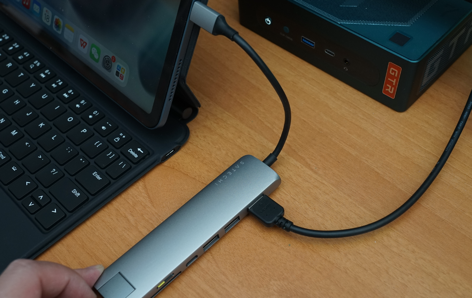 三、SATECHI多功能拓展坞: 当我使用iPad作为办公生产力时,因为足够的轻量化,接口只有一个Type-C,不方便进行外设扩展和连接投影仪,所以我马上入手了一款SATECHI多功能拓展坞,来搞定平板的接口不足。