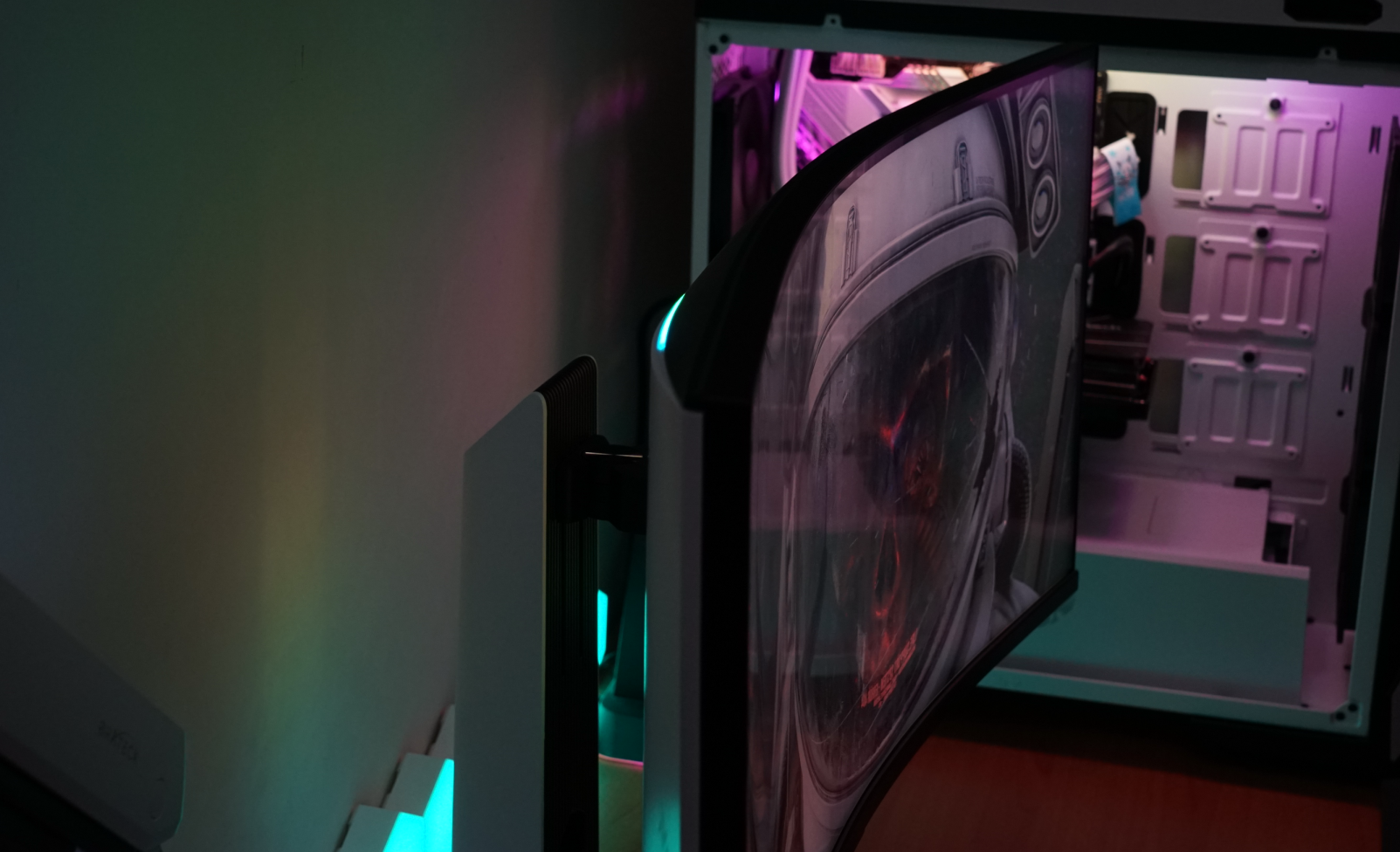 它的曲率为1500R,这个曲率在保证了一定的包围感和沉浸感的同时,又不会让我在使用时四个边角有肉眼可见的形变。