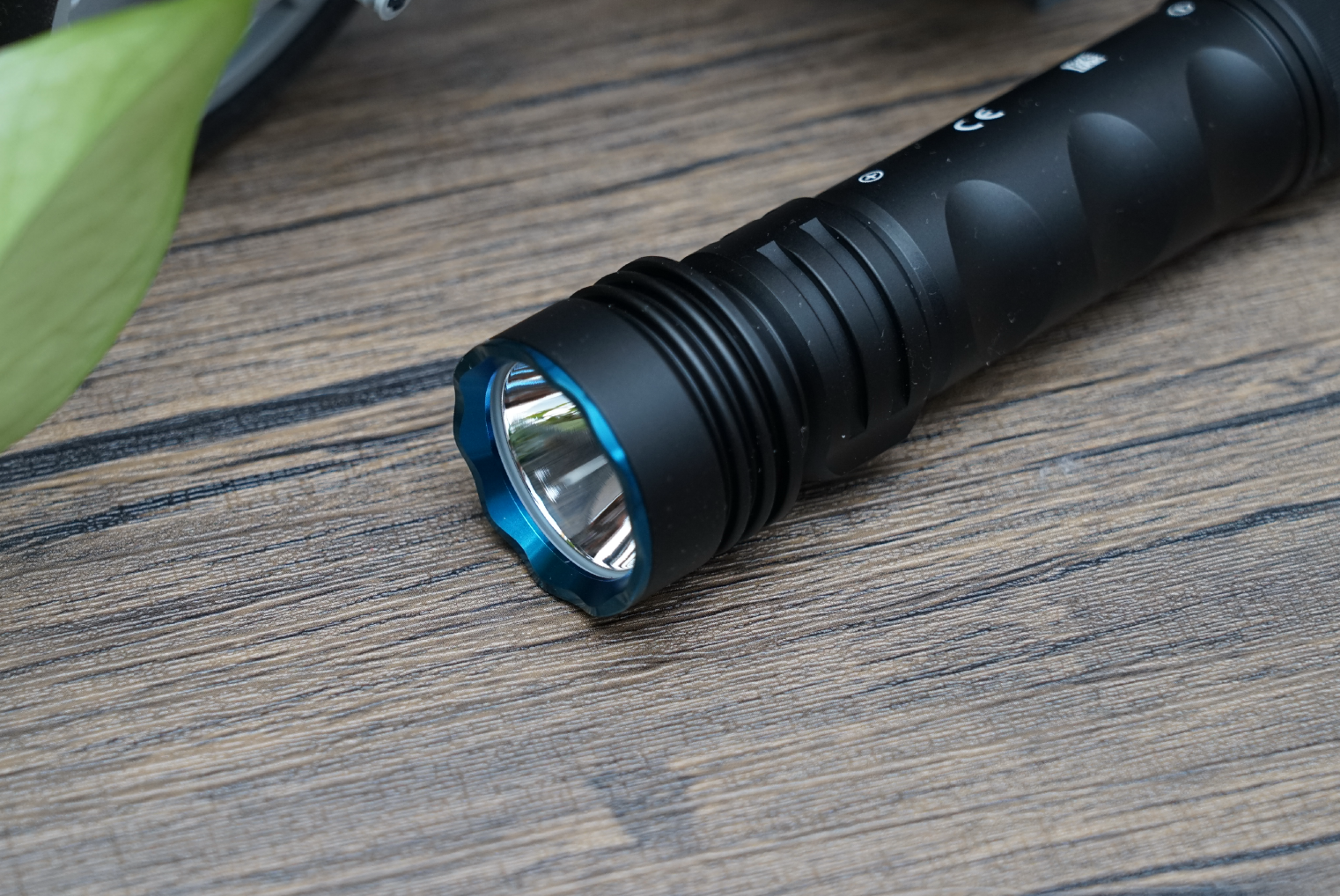 手电头部带有齿状刻纹,可以用来防身和敲砸一些硬物,手电掉落在地上时这些凸出的锯齿可以先一步接触到地面避免透镜受损。