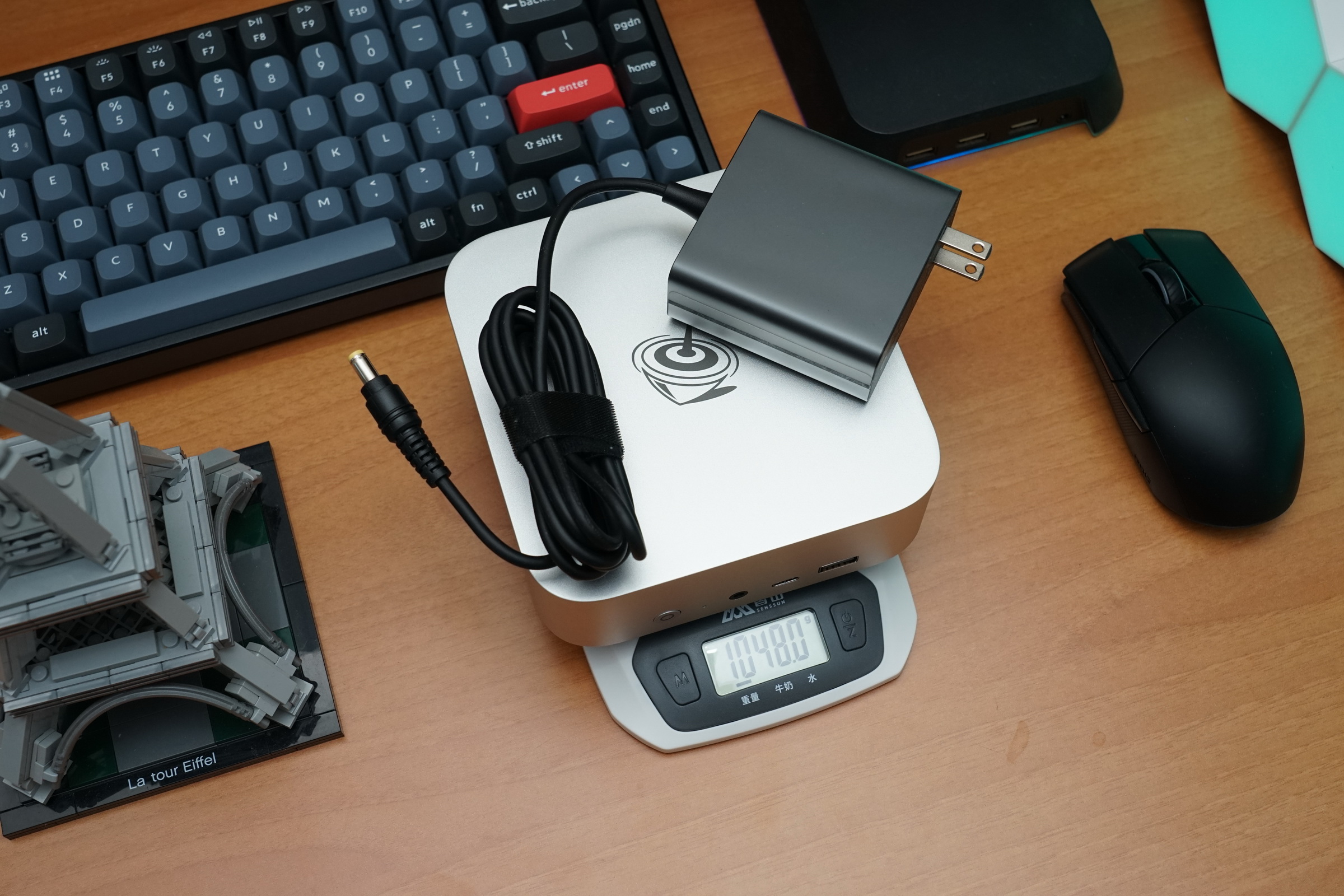 SER8搭配的电源依旧是航嘉制造的迷你适配器,功率120W, 加上SER8总重1000g出头,出差携带完全无压力。