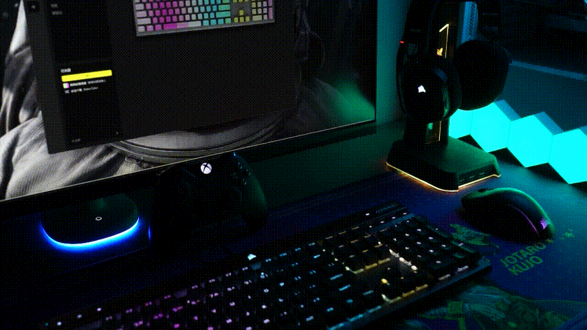 三、使用以及游戏体验:同一品牌的外设一起放在桌面上,观感上高度和谐统一,不浮夸但又充满质感,桌面立马档次飙升。