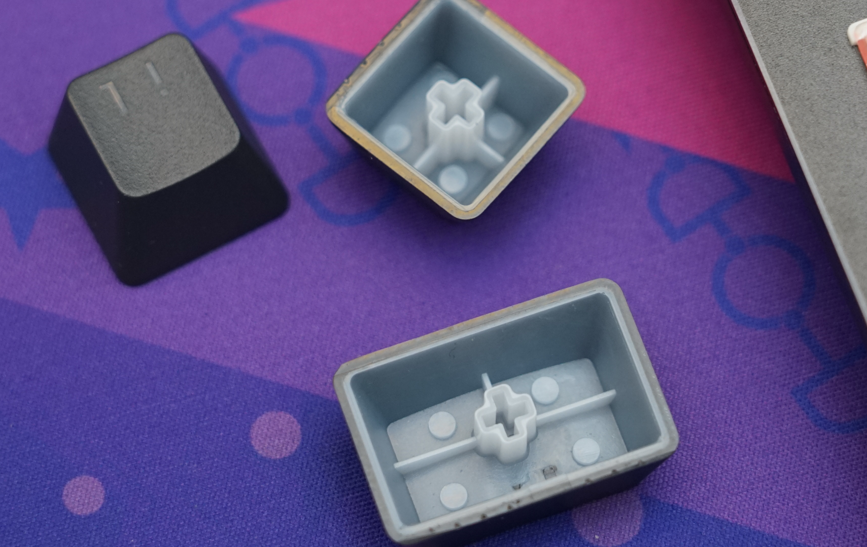 诸如Shift或者空格这种大键,在键位两端增加了两个卫星轴做支撑,提高稳定度。