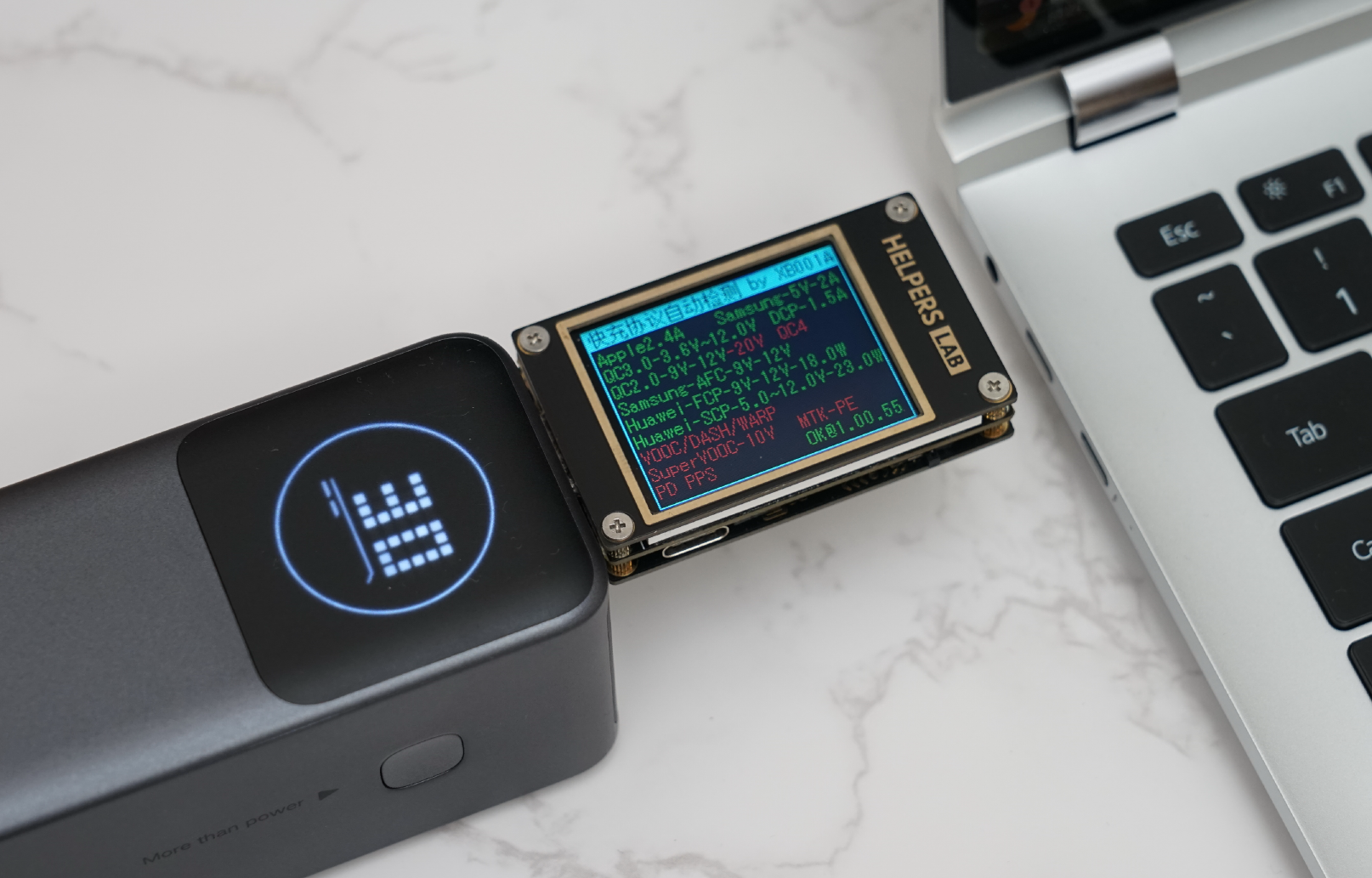 单独使用Type-C口的时候,100W的输出功率,让它不光可以为手机充电,平板电脑甚至是大多的笔记本电脑都可以用它进行充电。