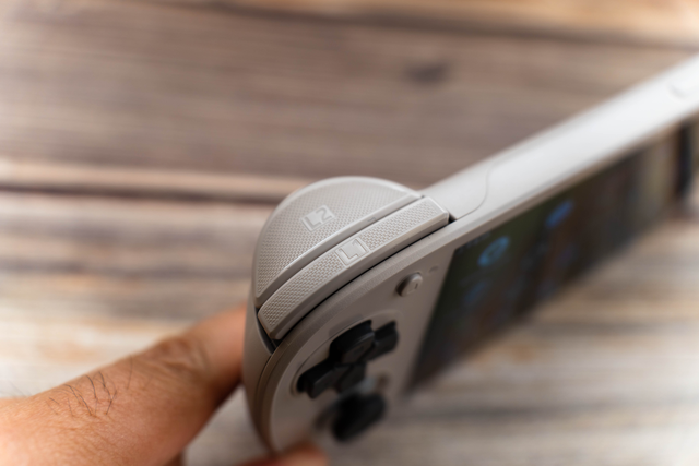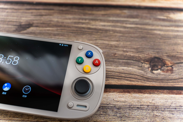 按键部分手感其实延续了 RP4P 的设计,十字键比较清脆、ABXY 略微偏硬,摇杆部分应该还是前代同款的霍尔摇杆。摇杆底部隐藏了 RGB 灯,个人感觉灰彩配色开灯不是很好看就没有打开,按键部分 ABXY 如果能更软一些按压手感会更舒服。机器配色部分有黑、白、紫、灰彩,我这一台是灰彩配色,据说第一批发货的基本是黑色和紫色,以及非常少量的灰彩,其他颜色可以参考其他收到机器用户的分享。 ▼ABXY 布局可更换,所以按键部分其实有一个单独的圆形区域,和前面板的一体性下降了一些,个人觉得如果做成全一体的灰更好看。