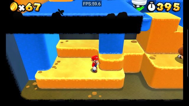 3DS 测试常见的马里奥 3D 大陆,大水杯整合包内的 Citra 模拟器+3倍分辨率,配置下基本也是很流畅的。