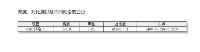 屏幕最大亮度部分实测570.9nits,白点部分7400K,轻微偏冷。