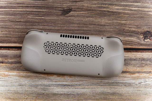 ▼机器背面有出入风口设计,内部集成了散热风扇,握把部分也有防滑纹理提升握持稳定性