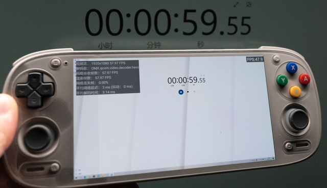 屏幕测试屏幕部分 RP5 采用了一块 1080P 60Hz 的 OLED 屏幕,相比之前复古掌机常见的 LCD 主要提升了色域、对比度、响应时间,尤其是响应时间部分完美解决了很多用户在意的冬季画面拖影问题(实际其实对复古游戏影响不大)。
