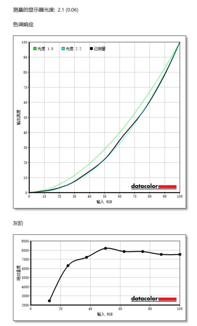 低亮度下光度曲线反而偏大一些,实测2.1的曲线其实更能在低亮度下分清灰阶差异,不过色温部分整体抬高到了8000K左右,相比100%亮度更冷一点点。