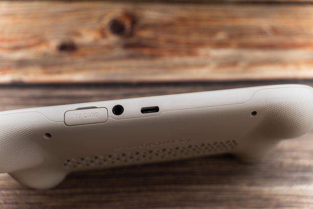 ▼机器底部是 TF 卡槽、3.5mm 耳机孔以及 USB Type-C 接口,其中 C 口支持视频输出