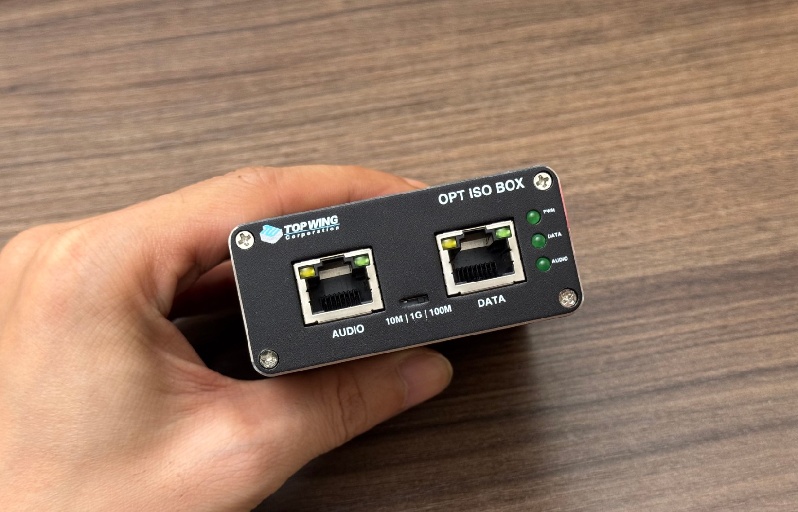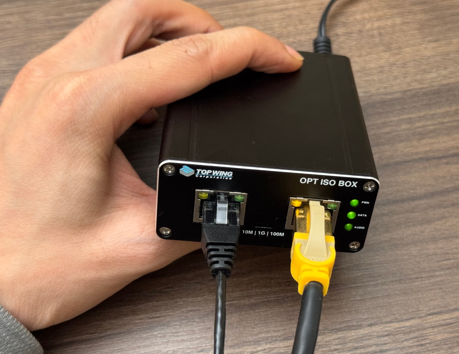 今天只说TOPWING的光隔离器,型号叫OPT ISO BOX,光隔离音频净化器,或者叫光隔离音频隔离器,纯纯为HiFi音质开发的网络附件。 一共仨口,两个通用网口,和12v直流dc口。 路径: 华硕路由器——超八类网线进——TOPWING内部光隔离——超八类网线出——数播、流媒体解码器等。 (这里没使用TOPWING网线,后续对比各种网络线材时候再专门测。)